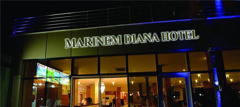 Duke pasqyruar të gjitha aspektet e bukurisë natyrore të parajsës se Mesdheut, Mirë se vini në pushimet tuaja unike. Nje hotel I plote familjar, me gjelberim relaksues, malet e veshur me pisha, me tinguj zogjsh qe I bejne jehonë parajses. Marinem Diana Hotel I rinovuar ne vitin 2013 ofron një pishinë të hapur me acqua park, spa Wi-Fi, animacion cdo dite ne orare te ndryshme, shfaqje ditore dhe nje here ne jave ka shfaqje Turke. Hoteli ka plazhin e tij privat vetëm 150 metra larg. Akomodimi: Marinem Diana permban 143 dhoma standarte te cilat jane zbukuruar me shume shije me nje mobilim modern. Të gjitha përfshijnë një TV LCD, minibar, kondicioner, tharese flokesh dhe një kasaforte. Disa dhoma ofrojnë kane me pamje nga kopshti, pishina apo mali. Baret dhe restorantet: Restoranti kryesor me kapaciet 400 persona brenda dhe 400 persona ne ambient te hapur shërben mengjesin, mengjesin e vone, dreken, dhe darken si edhe kek/caj me kuzhinë mesdhetare ne stil bufeje të hapur. Ju gjithashtu mund të provoni shijet unike te gatuara në furrën e gurit. Baret e hotelit perkatesisht: Bari i restorantit, Bari i Lobit dhe Bari i verandes ofrojnë një shumëllojshmëri të pijeve vendase alkoolike, jo-alkoolike, dhe snacks. Per argetimin e femijeve ka animacion, mini-klub, kend lojerash . Qendra Spa dhe Wellness përfshin një banjo tradicionale turke, sauna, dhoma me avull dhe një jacuzzi për relaksim si edhe një palestër. Qendra e qytetit te Antalias është 30 km nga hoteli. Aeroporti i Antalias është 42 km larg.