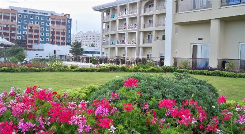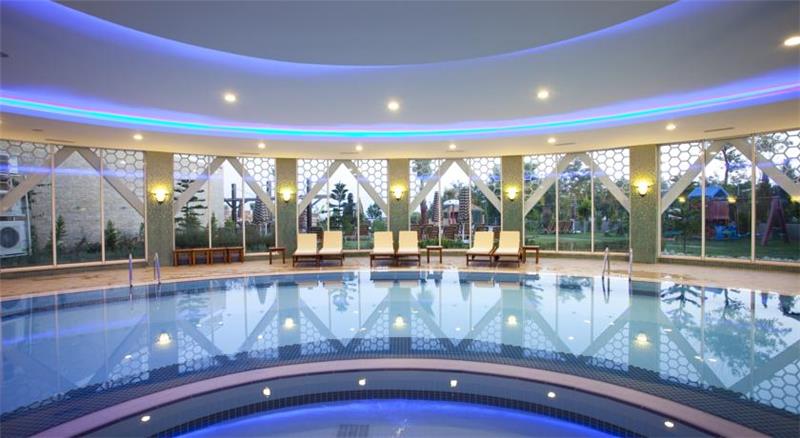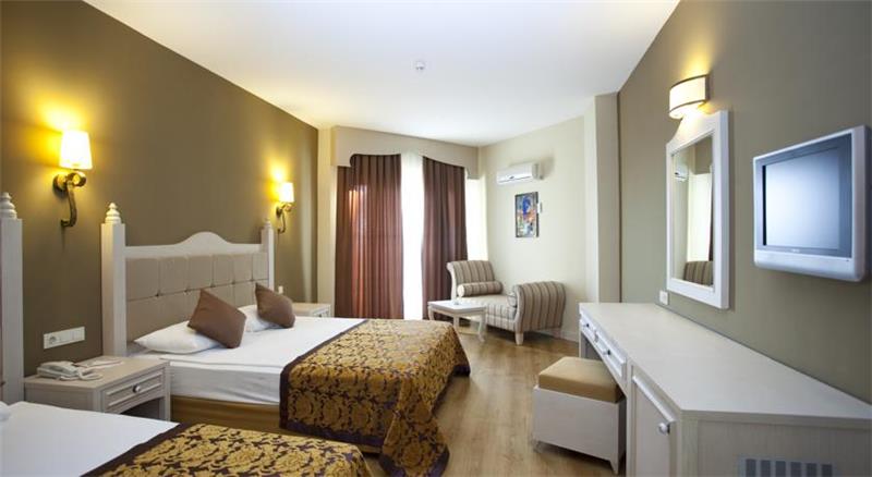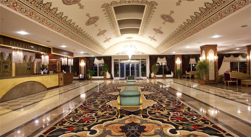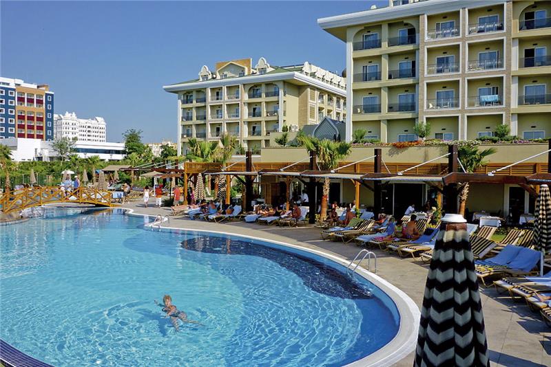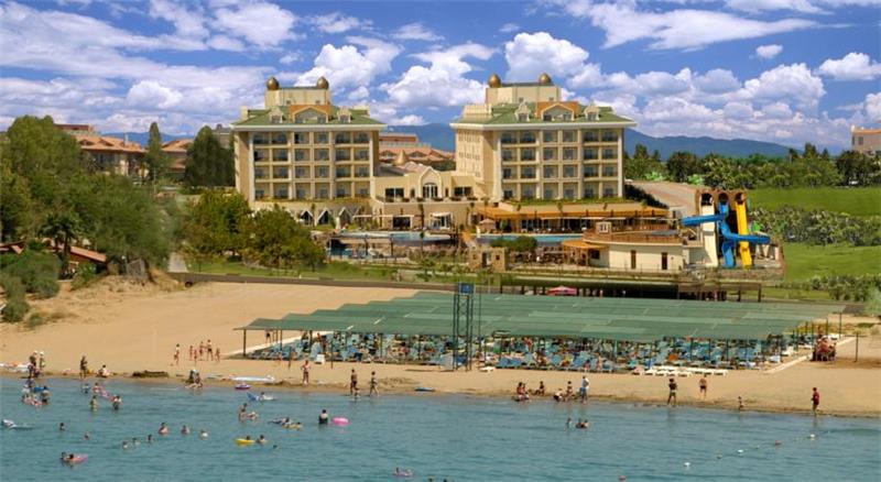 Nje hotel i mrekullueshem qe ndodhet ne rivieren e bukur turke ne ate te Sides me nje distance prej 50 min larg nga aeroporti i Antalias dhe prane plazhit te i tij privat. Hoteli ka 2 ndertesa me 5 kate qe ofrojne nje kapacitet prej 190 dhomash standarte, 16 dhoma familjare, 4 suita dhe 2 dhoma per persona me aftesi te kufizuar. Ketu do te gjeni mundesi te ndryshme argetimi dhe clodhje sic jane : pishine e brendeshme, pishine e jashtme , pishine per femije, rreshqitese, terrene sportive ne breg te detit dhe ne fusha te posacme profesionale, sportet e ujit (katamaran, banana parashute etj. Qender fitnesi, spa dhe sauna me trajtime te vecanta per trupin dhe lekuren tuaj. Animacione ne pishine dhe ne det, show dhe spaktakle me muzike live, kercime etj. Baret dhe restorantet : Hoteli operon me sherbimin all inclusive duke ju servir gatimet e preferuara ne baret dhe restorantet e vena ne dispozicion. Restoranti kryesor – ka nje kapacitet prej 400 personash dhe hapet nga ora 07.00-21.30 dhe sherben vaktet kryesore te gatimit ne bufe te hapur me mundesi perzgjedhje sipas shijes dhe deshires tuaj. Ottoman a la carte restorant – hapet nga ora 19.00-21.30 me nje kapacitet prej 60 personash dhe sherben gatime speciale nga guzhina turke. Pasticeria kafe – sherben embelsira, caj dhe kafe pergjate gjithe dites. Irish pub, lobby bar, pool bar, beach bar - sherben darken me specialitetet me te mira nga guzhina turke. Lobby bar , pool bar, beach bar - sherbejne te gjitha llojet e pijeve duke filluar nga ato vendase dhe te importit , te ngrohta dhe te ftohta , alkoolike dhe joalkoolike , embelsira dhe akullore si dhe kokteile shumengjyreshe me shije te ndryshme.