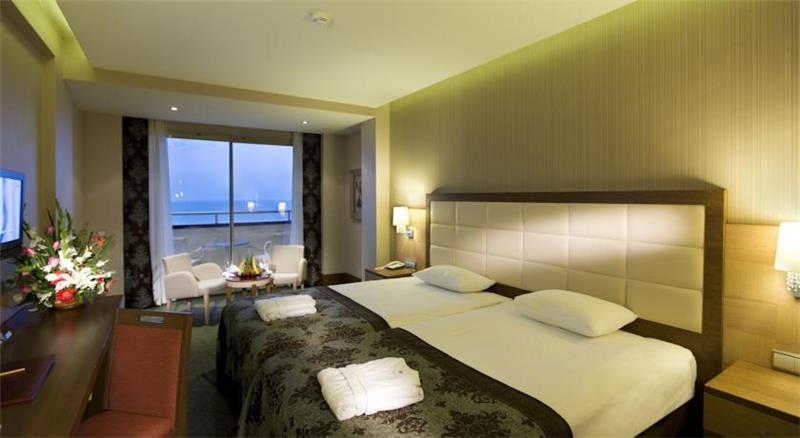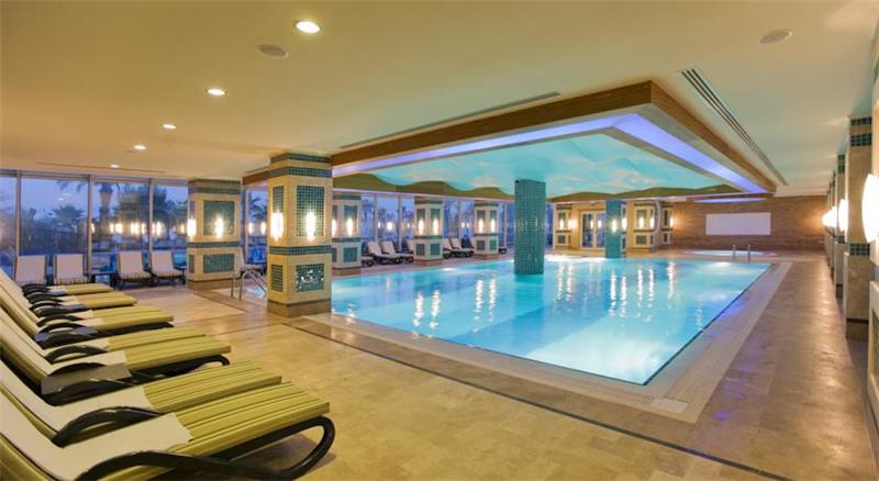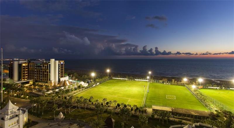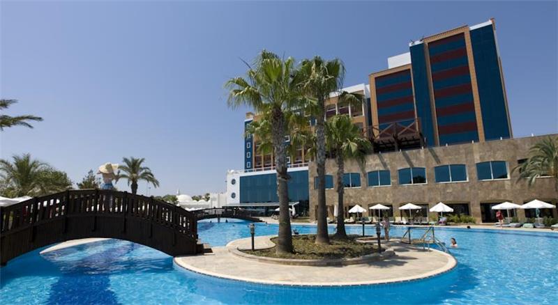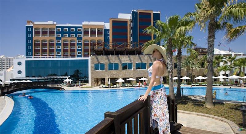I ndertuar ne vitin 1992 dhe i rikonstruktuar plotesisht ne vitin 2008 dhe ka nje siperfaqe prej 240.000 m2, vetem 10 min larg aeroportit te Antalias. Hoteli ofron nje cilesi te larte sherbimi dhe akomodimi per te gjithe te ftuarit e saj. Me nje arkitekture moderne dhe mjaft te vecante ky hotel ofron pushime te paharrueshme per te gjitha moshat. Ndertsa kryesore eshte 6 kateshe me nje kapacitet prej 556 dhomash te arredura me kushte moderne dhe mjaft cilesor. Dhomat jane te ndara ne : dhoma deluxe, dhoma standarte, villa, dhoma familjare dhe suita familjare. Ketu do te keni mundesi te ndryshme argetimi dhe clodhje sic jane: 6 pishina ( pishine e brendeshme, pishine e jashtme , pishine relaxi , pishine per femije, pishine olimpike, pishine gjysem olimpike dhe pishine e brendeshme me uje te ngrohte, aquapark me rreshqitese gjigande. Dyqane luksoze per te gjithe te apasionuarit mbas blerjeve. Baret dhe restorantet : Hoteli operon me sherbimin ultra all inclusive duke sherbyer gatime dhe pije pergjate gjithe dites ne baret dhe restorantet e vena ne dispozicion duke ju dhene mundesine te perzgjidhnin gatimet tuaja te preferuara. Gatimet qe ofrohen jane nga guzhina turke dhe ajo nderkombetare. Restoranti kryesor- hapet nga ora 07.00-21.30 dhe sherben vaktet ne bufe te hapur me gatime te mira dhe cilesore. Yengec sea food- sherben darken nga ora 19.00-21.30 me gatimet me te mira me baze peshku dhe prodhime deti. Kamelia pool bar – hapet nga ora 10.00-15.30 dhe sherben gatime te shpejta pergjate pishines shoqeruar dhe me pije. Beach barbeque snack- sherben gatime te zgares per te gjithe te apasionuarit e saj. Gozleme house- sherben gatime tradicionale turke. Chinese restorant a la carte restorant – hapet nga ora 19.00-21.30 dhe sherben gatime speciale nga guzhina kineze. La perla a la carte restrorant – hapet nga ora 19.30-22.00 dhe sherben gatime speciale nga guzhina italiane. Azteca a la carte restotant – sherben specialitete nga guzhina meksikane. Turqoise turkish restorant – sherben gatime speciale nga guzhina turke. Pool bar , beach bar , sea bar , live music bar , nazar bar, aqua bar - sherbejne te gjitha llojet e pijeve duke filluar nga ato vendase dhe te importit , te ngrohta dhe te ftohta , alkolike dhe joalkolike , embelsira dhe akullore si dhe kokteile shumengjyreshe me shije te ndryshme.