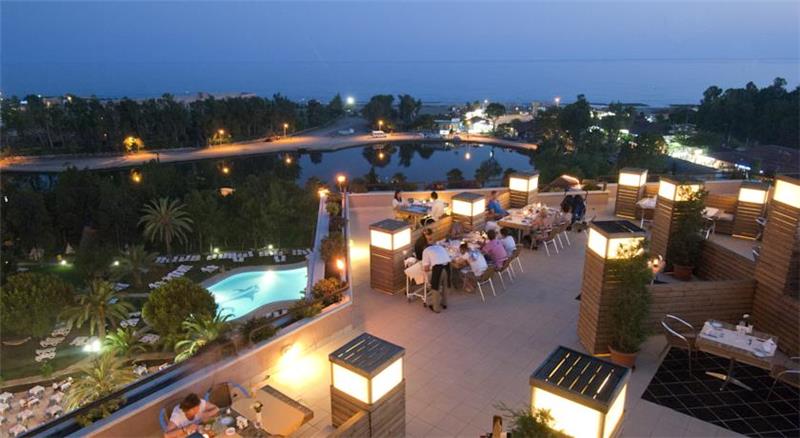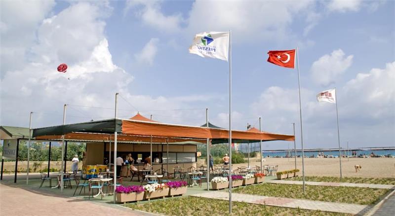 Nje hotel i mrekullueshem i ndertuar ne vitin 1999 dhe i rinovuar ne vitin 2011 ofron nje cilesi te larte sherbimi dhe akomodimi per te gjithe pushuesit e saj. Hoteli ka nje siperfaqe prej 38.000 m2 dhe ka vetem nje ndertese kryesore me 8 kate me nje kapacitet prej 342 dhomash me ne total 732 shtreter te arredura ne menyre elegante dhe me te gjitha kushtet e nevojshme qe ju nevojiten. Ne dispozicionin tuaj jane: 2 pishina e jashtme me (510 m2), 1 pishine relax (371m2),1 pishine me rreshqitese 113 m2, 2 pishina per femije , show dhe spektakle ne pishine dhe ne det. Terrene sportive si dhe sportet e ujit jane nje tjeter risi per tu eksploruar dhe per te kaluar pushime te paharrueshme. Show-t, animacionet jane nje tjeer risi per tu zbuluar dhe eksloruar. Baret dhe restorantet – hoteli operon me sherbimin all inclusive dhe sherben gatime dhe pije pergjate gjithe dites ne baret dhe restoantet e vena ne dispozicion. Prestige Main restaurant : hapet nga ora 07.00-21.30 dhe sherben vaktet kryesore ne bufe te hapur me menu te ndryshme perzgjedhjes nga guzhina turke dhe ajo nderkombetare. A l’carte restaurant: perfshihet Sultan Sofrasi I cili ofron gatime turke, Fish Restaurant I cili ofron ushqimet me te mira te detit dhe Italian Restaurant qe ofron gatimet me te mira italiane. Lobby bar, disco bar- qe jane te hapur gjate gjithe vitit dhe - ofrohen pije pergjate gjithe dites duke filluar nga pijet e importit dhe vendase, alkoolike dhe joalkoolike, pije te ndrohta dhe te ftohta si dhe kokteile te ndryshme me fruta.