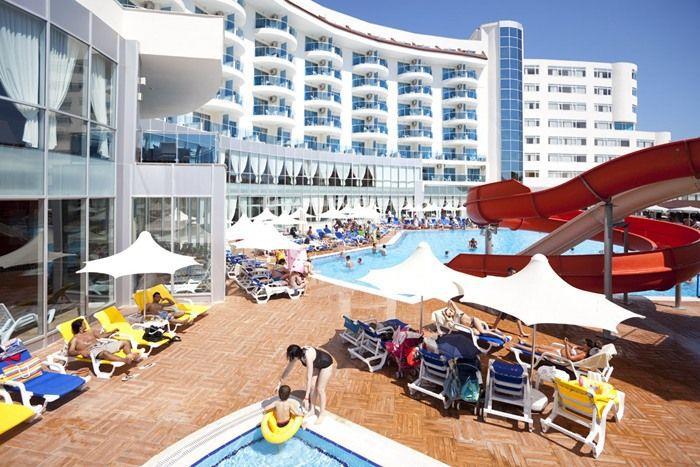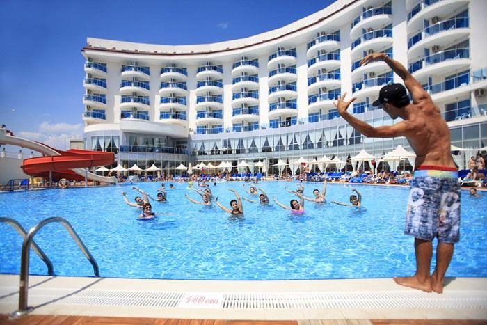 Nje hotel fantastik i vendosur vetem disa metra larg detit ku ju mund te shijoni ujin e kalter dhe te paster si dhe vendet historike dhe kulturore qe ndodhen prane ketij resorti. Vetem 5 km larg qytetit te Sides, 55 km larg nga aeroporti i Antalias hoteli ju ofron nje pafundesi zgjidhjesh argtetimi per te gjithe pushuesit e saj. I vendosur ne dispozicion te pushuesve nje autobuz per ne plazhin e tij privat. Me nje kapacitet prej 293 dhomash te arreduara ne menyre fantastike dhe te pershtatshme per cifte dhe familjare. Ketu do te gjeni pishine te bredndshme, te jashtme , pishine per femije , animacione , miniclub, sportet e ujit , shfaqje te ndryshme , disco ose , mbremje nen tingujt e muzikes live. Po ashtu ju do te gjeni nje varietet teknikash qetesuese, masazhe , banjo turke, trajtime per fytyren, trupin, sauna etj . Baret dhe restorantet- Hoteli operon me sherbimin all inclusive dhe sherben gatime dhe pije pergjate gjithe dites ne baret dhe restorantet e vena ne dispozicion. Nar Restaurant -eshte restoranti kryesor qe sherben vaktet kryesore si dhe vaktet e ndermjetmene bufe te hapur dhe dyert e tij hapen nga ora 07.00-21.00 dhe mbar ores 21.00 ju do te ju ofrohen emblesira , akullore ne pasticerine e restorantit .Lalezaer a’la carte restaurant: Sherben nga ora 19.00-21.00 dhe duhet te rezervoni me perpara, klientet ju lejohet vetem njehere ne jave frekuentimii I tij. Bars: per ata qe kane nevoje per pak freski apo nje clodhje nen shijimin e pijeve te ndryshme, kokteileve , pijeve alkoolike, joalkoolike, vendase apo te importit hoteli ofron bare ne te cilet ju mund te gjeni cdo gje qe ju nevojitet,si : lobby bar, pool bar, beach bar, disco bar te hapur per ju nga ora 10.00-24.00.