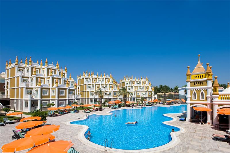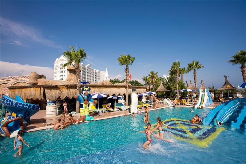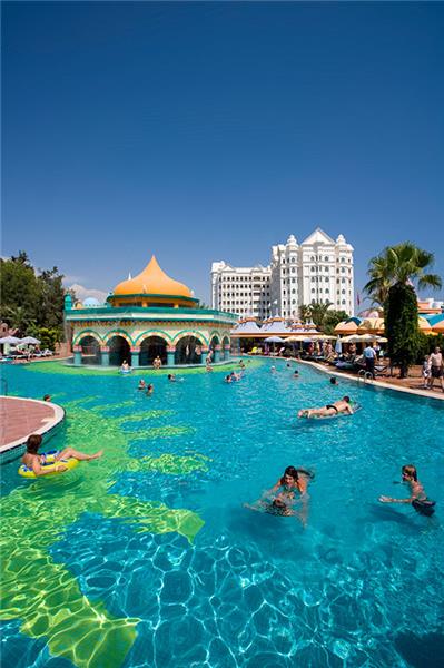 I ndertuar ne vitin 1992 dhe i rikonstruktuar plotesisht ne vitin 2008 dhe ka nje siperfaqe prej 240.000 m2, vetem 10 min larg aeroportit te Antalias. Hoteli ofron nje cilesi te larte sherbimi dhe akomodimi per te gjithe te ftuarit e saj. Me nje arkitekture moderne dhe mjaft te vecante ky hotel ofron pushime te paharrueshme per te gjitha moshat. Ndertsa kryesore eshte 6 kateshe me nje kapacitet prej 556 dhomash te arredura me kushte moderne dhe mjaft cilesor. Dhomat jane te ndara ne : dhoma deluxe, dhoma standarte, villa, dhoma familjare dhe suita familjare. Ketu do te keni mundesi te ndryshme argetimi dhe clodhje sic jane: 6 pishina ( pishine e brendeshme, pishine e jashtme , pishine relaxi , pishine per femije, pishine olimpike, pishine gjysem olimpike dhe pishine e brendeshme me uje te ngrohte, aquapark me rreshqitese gjigande. Dyqane luksoze per te gjithe te apasionuarit mbas blerjeve. Baret dhe restorantet : Hoteli operon me sherbimin ultra all inclusive duke sherbyer gatime dhe pije pergjate gjithe dites ne baret dhe restorantet e vena ne dispozicion duke ju dhene mundesine te perzgjidhnin gatimet tuaja te preferuara. Gatimet qe ofrohen jane nga guzhina turke dhe ajo nderkombetare. Restoranti kryesor- hapet nga ora 07.00-21.30 dhe sherben vaktet ne bufe te hapur me gatime te mira dhe cilesore. Yengec sea food- sherben darken nga ora 19.00-21.30 me gatimet me te mira me baze peshku dhe prodhime deti. Kamelia pool bar – hapet nga ora 10.00-15.30 dhe sherben gatime te shpejta pergjate pishines shoqeruar dhe me pije. Beach barbeque snack- sherben gatime te zgares per te gjithe te apasionuarit e saj. Gozleme house- sherben gatime tradicionale turke. Chinese restorant a la carte restorant – hapet nga ora 19.00-21.30 dhe sherben gatime speciale nga guzhina kineze. La perla a la carte restrorant – hapet nga ora 19.30-22.00 dhe sherben gatime speciale nga guzhina italiane. Azteca a la carte restotant – sherben specialitete nga guzhina meksikane. Turqoise turkish restorant – sherben gatime speciale nga guzhina turke. Pool bar , beach bar , sea bar , live music bar , nazar bar, aqua bar - sherbejne te gjitha llojet e pijeve duke filluar nga ato vendase dhe te importit , te ngrohta dhe te ftohta , alkoolike dhe joalkoolike , embelsira dhe akullore si dhe kokteile shumengjyreshe me shije te ndryshme.