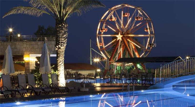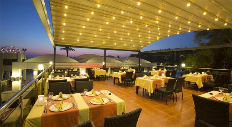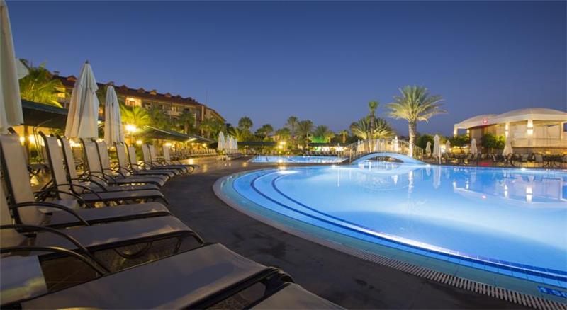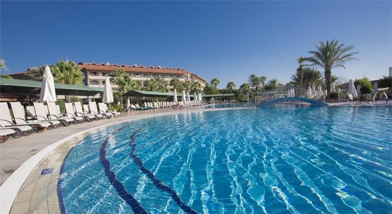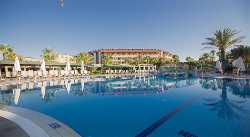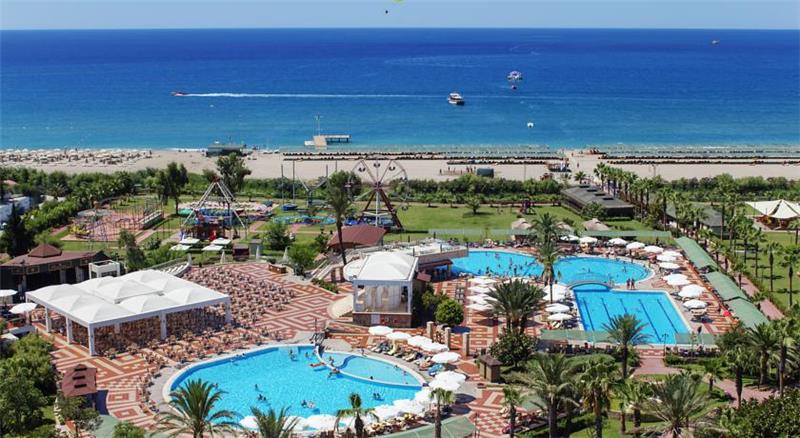 Nje hotel i mrekullueshme i vleresuar me nje ser cmimesh nderkombetare me nje vendodhje te favorshme vetem disa metra larg brigjeve te mesdheut,1 ore larg aeroproti te Antalias dhe 10 min larg qytetit antik te Sides. Hoteli eshte rinovuar plotesisht ne vitin 2014 dhe zoteron nje siperfaqe prej 132.000m2 dhe ka nje kapacitet prej 686 dhomash te vendosura ne ndertesen kryesore, club building dhe villat. Dhomat jane te arredura me kushte komode dhe cilesore te cilat ndahen ne : dhoma standarte , dhoma dublex dhe dublex 2 kate. 8 pishina jane ne dispozicionin tuaj te ndara ne : Olimpik pool (868 m2), relax pool dhe kids pool(530m2), aqua pool dhe aqua kids pool(950 m2), pishine e brendeshme per te rritur dhe femije me siperfaqe 62m2, villa pool me sip.93m2. Te gjithe pushuesit kane mundesine te argetohen ne : aquapark , lunapark, kopeshtin zoologjik, qender fitnesi dhe spaje me trajtime te vecanta sipas kerkesave tuaja, terrene sportive profesionale per te gjithe personat qe duan te ndihen aktiv dhe vital, sportet e ujit , miniclub, kendlojrash per femije. Baret dhe restorantet- Hoteli operon me sherbimin all inclusive dhe sherben gatime dhe pije pergjate gjithe dites ne baret dhe restorantet e vena ne dispozicion. Sofra restorant - ka nje kapacitet prej 300 vendesh ne tarrace dhe 1000 vende brenda. Servit per te gjithe te ftuarit vaktet kryesore ne ne bufe te hapur me mundesi zgjedhje. Ketu aplikohen dhe menu dietike per te gjithe ata qe deshirojne gatime speciale . Aqua park restorant - sherben gatime te shpejta pergjate dites si pizza, spageti, sup, sallate etj. Paradise beach restorant - ndodhet ne breg te deti dhe sherben gatime te shpejta pergjate vaktit te drekes. Select restorant - eshte restorant I perzgjedhur vetem klientet Vip . Gozleme tend- sherben gatime tradicionale turke pergjate orarit te drekes si byrek, pite etj. Pasticerie bar - sherben embalsira, caj dhe kafe pergjate gjithe dites. Bellona a la carte restorant - hapet nga ora 19.00-21.30 dhe sherben darken me menu speciale me baze peshku dhe prodhime deti. Dragon Chinese - sherben gatime tipike nga guzhina kineze. El Torido - sherben gatimet me te mira nga guzhina meksikane. Lobby bar , pool bar, tashan bar , disco bar - - ofrohen pije pergjate gjithe dites duke filluar nga pijet e importit dhe vendase, alkoolike dhe joalkoolike, pije te ngrohta dhe te ftohta si dhe kokteile te ndryshme me fruta.