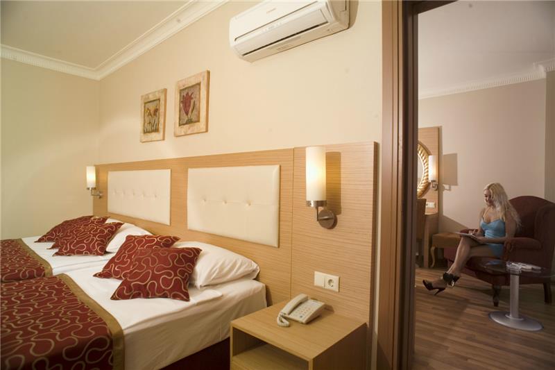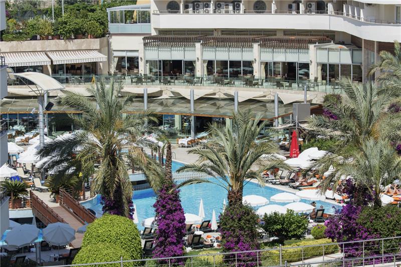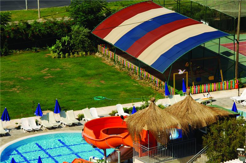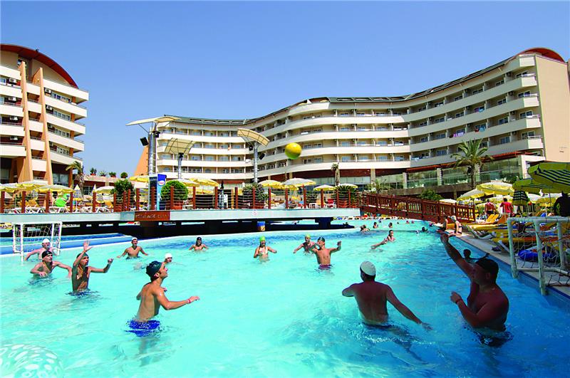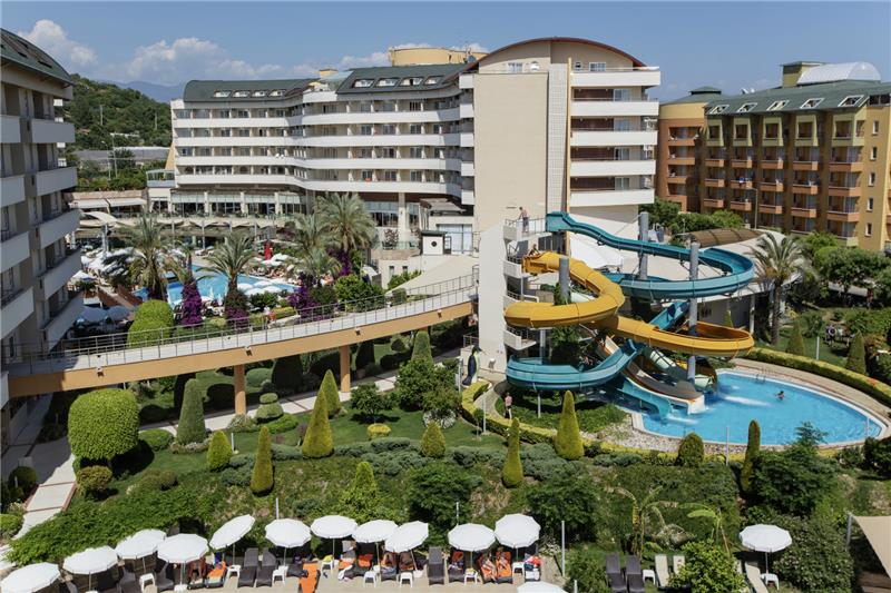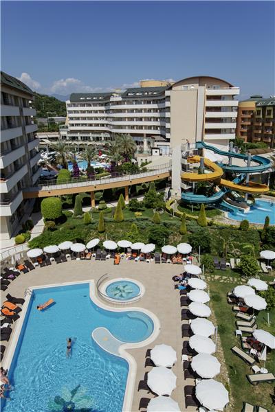 Alaiye Resort eshte nje hotel qe ofron pushime te rehatshme dhe te kendshme vetem disa kilometra larg qendres se Alanias dhe bregdetit Turquoise me rere te arte qe laget nga ujrat e kaltra te detit Mesdhe. Hoteli ofron nje cilesi te larte sherbimi dhe akomodimi dhe kushte mjaft te mira. Ketu do te gjeni aktivitete te pafundme ne lojra dhe aktivitete qe ne asnje moment te dites mos te ndjeni monotoni por vetem argetim pafund. Terrenet sportive luksoze jane te vena ne dispozicionin tuaj pergjate gjithe dite dhe nates me ambjente te ndricuara dhe komode, 2 pishinat e jashtme 1 e brendeshme dhe pishina per femije jane te pajisura me shezlongjet pergjate tyre dhe ne breg te detit duke ju ofruar juve komoditet dhe nje panorama te mrekullueshme. Femijet kane ne dispozicionin e tyre dhe kendin e lojrave per femije si dhe akuaparkun me rreshqitese. Hoteli ofron 199 dhoma Standarte, 34 Connected room, 192 dhoma standarte femiljare, 4 suita standarte, 5 dhoma familjere butik, 2 dhoma selective, 1 Suita mbreterore. Baret dhe Restorantet: Hoteli operon me sherbimin all inclusive sherben ushqim dhe pije pergjate gjithe dites ne baret dhe restorantet e vene ne dispozicion . Ketu do te keni mundesi te ndryshme zgjedhjesh ne ushqime nga guzhina vendase dhe ajo nderkombetare. Hoteli ve ne sherbimin tuaj restorantin kryesor Aliye, i cili ofron ne buffe te hapur mengjesin, dreken dhe darken. Restorantet A la carta sherbejne ushqim Mediterranean me kuzhine Mesdhetare, Ottoman restorant- sherben ushqime te kuzhines tradicionale dhe Turke dhe me pije te perfshira me pagese ekstra,Chinese restorant- sherben ushqime nga kuzhina Kineze si shushi etj. Seljouk Salon- ku mund te provoni te gjitha llojet e Banqueteve sipas guzhines austriake. Snack bar restorant – sherben ushqime te shpejta si pica, pite, sanduic etj. Kryesisht sherben dreken. Disco bar, me muzike te perzgjedhur vendase dhe te huaj. Garden bar, Fancy bar, Puzzle bar- sherben pije te ndryshme si ate alkolike dhe joalkoli, te ngrohta dhe te ftohta, kokteile me shije te ndryshme .