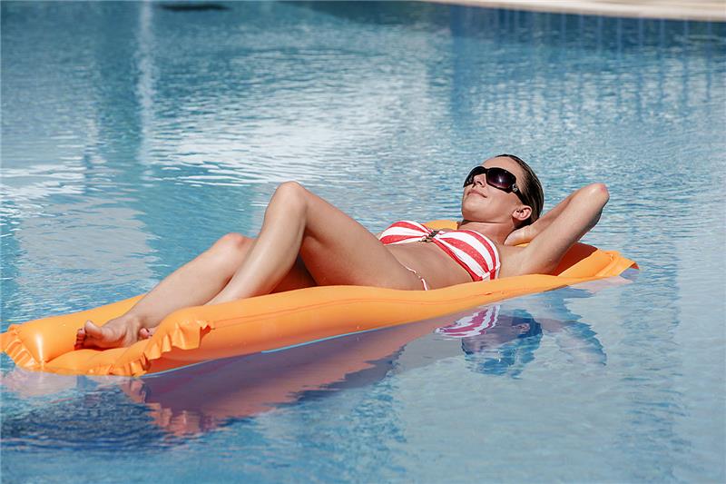- Shezlonge dhe çadra ne pishine
