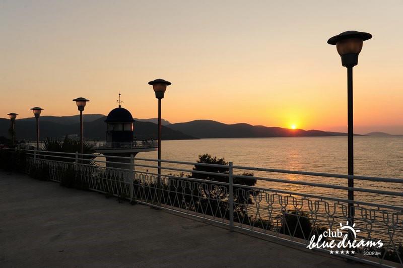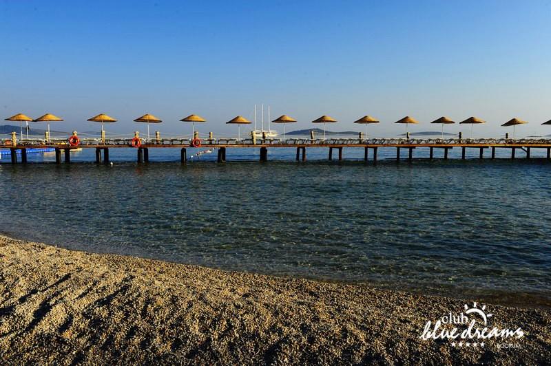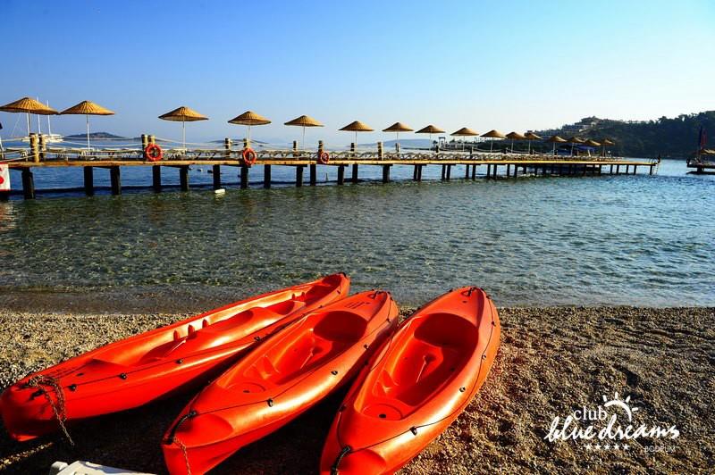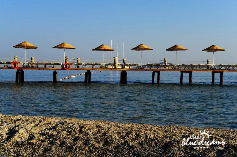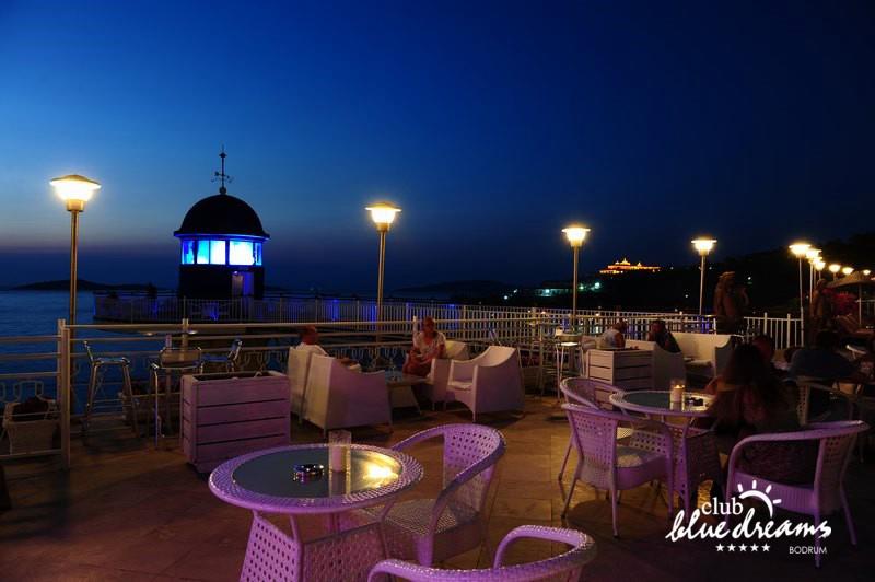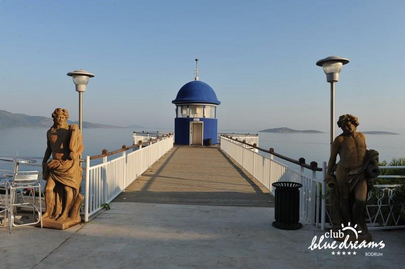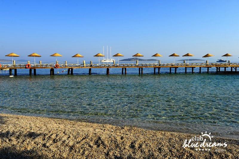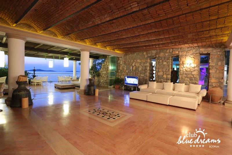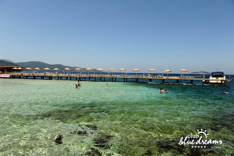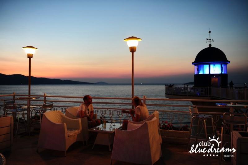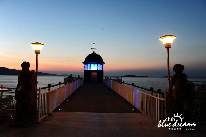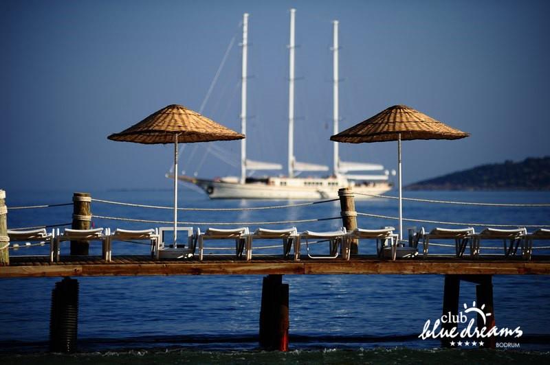 Club blue dreams eshte nje hotel me 5 yje I vendosur ne nje siperfaqe 70000 m2 I cili perfshin plazhin e tij privat ne nje vije bregdetare rreth 700 m. Hoteli eshte I vendosur ne Zeytinli Kahve ne nje nga gjiret me te bukur te Bodrumit, 15 min larg nga qendra e qytetit dhe 30 min nga aeroporti. Ne dispozicionin tuaj do te jene 289 dhoma te cilat jane te arreduara ne menyre moderne dhe komforte. Pushuesit do te kene mundesi te shumta argetimi dhe clodhjeje ne hotel. Per ju ofrohen dy pishina kryesore, nje pishine per femije, nje pishine e brendshme, qender spaje, fitnessi dhe sauna ne te cilat ju do te relaksoheni duke bere trajtime te ndryshme per trupin dhe fytyren tuaj. Aktivitetet fillojne me shfaqje te ndryshme si animacione, shfaqje iluzive, aktivitete sportive si tenis, vollejboll, basketboll, gjimnastike, bilardo, joking etj. Nuk do te mungojne as sportet e ujit ku ju do te keni mundesi te praktikoni serf, banana, canoe,ringo etj. Per femijet tuaj ofrohet nje miniclub ne te cilin ata mund te zhvillojne aktivitete sportive, educative dhe artistike. Gjithashtu ata do te kene nje kendlojerash , aquapark, disco dhe aminacione . Baret dhe restorantet: Hoteli operon me sherbimin all inclusive. Turquoise restaurant eshte restoranti kryesor i hotelit ne te cilin ju do te shijoni ushqime te shumta nga kuzhina turke te servirura ne bufe te hapur. Kebap house ofron nje specialitetine kebapit dhe gatime te kuzhines turke ne nje mjedis te qete dhe te kendshem. Ristorante il fare sherben darken duke ju servirur ushqim Italian. Deep blue a la carte restaurant ofron produktet e peshkut dhe frutat e detit te gatuara ne menyre tradicionale. China Maniaa la carte restaurant sherben darken duke ju servirur ushqim kinez. Pool bar eshte I vendosur ne ambientet prane pishines duke ju dhuruar nje pamje pamoranike dhe te kendshme ne shoqerine e pijeve te ndryshme dhe kokteileve shumengjyrshe. Lounge bar ofron pije alkolike dhe kokteile ne nje mjedis te qete dhe relaksues. Beach bar ofron kokteile te ndryshme per pushuesit qe zgjedhin te pushojne ne plazhin e hotelit. Tea Garden sherben pije te lehta, caj, kafe dhe embelsira ne nje mjedis te ngrohte familiar. Disco bar ndodhet prane plazhit ne te cilin ju mund te shijoni pije te ndryshme ne shoqerine e muzikes moderne. Night club eshte ne dispozicionin tuaj pas mbylljes se disco bar dhe sherben pije si alkolike, joalkolike, vendase dhe te importit te cilat jane me pagese.