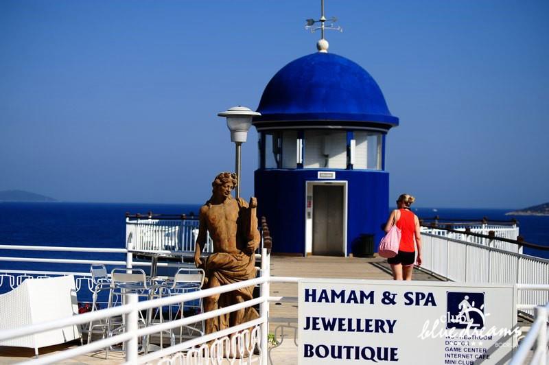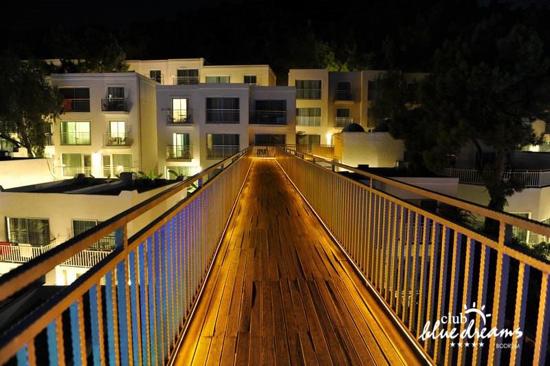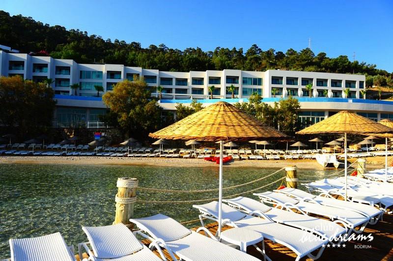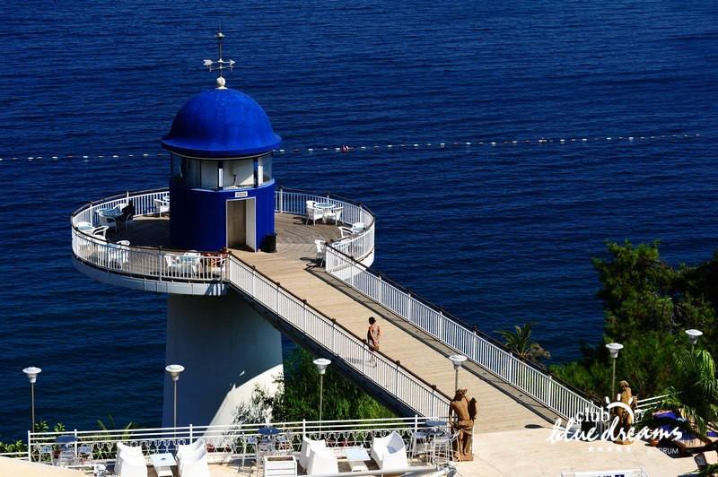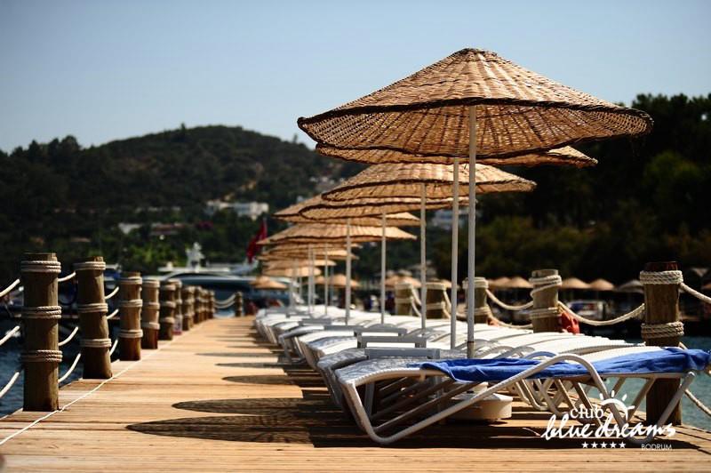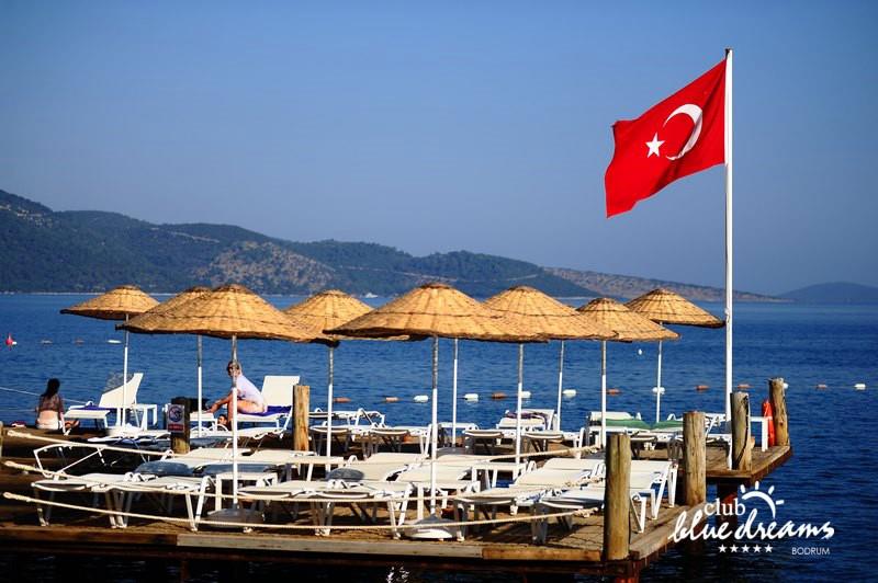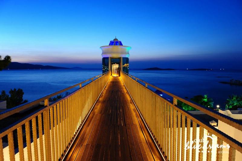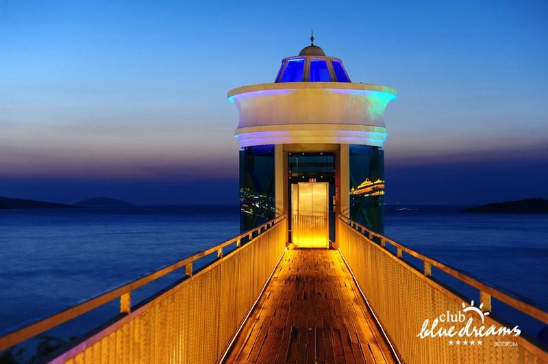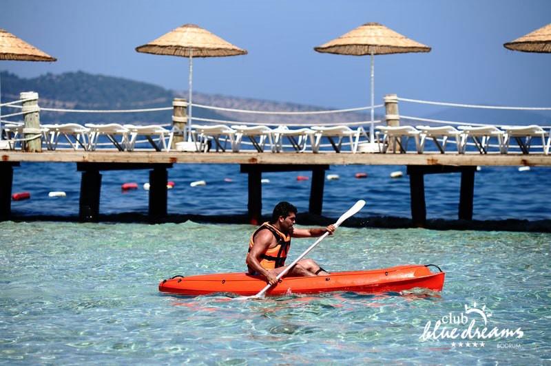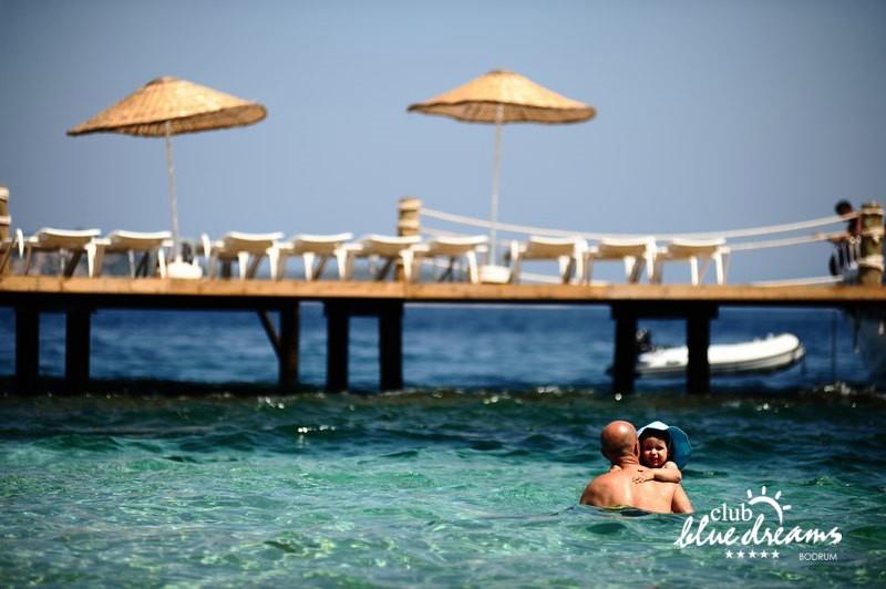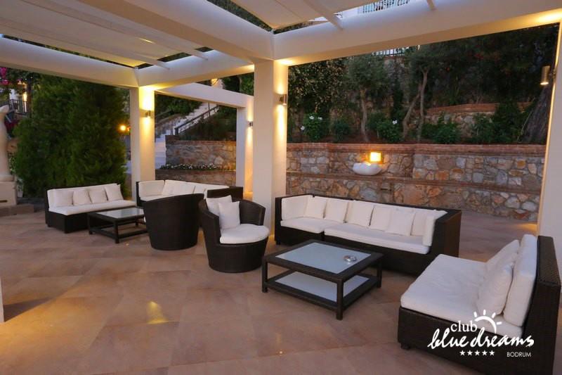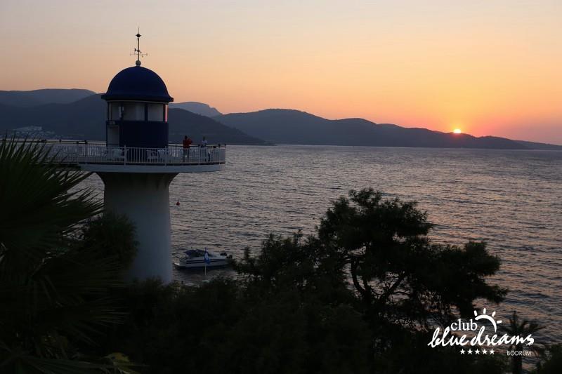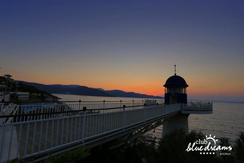 Club blue dreams eshte nje hotel me 5 yje I vendosur ne nje siperfaqe 70000 m2 I cili perfshin plazhin e tij privat ne nje vije bregdetare rreth 700 m. Hoteli eshte I vendosur ne Zeytinli Kahve ne nje nga gjiret me te bukur te Bodrumit, 15 min larg nga qendra e qytetit dhe 30 min nga aeroporti. Ne dispozicionin tuaj do te jene 289 dhoma te cilat jane te arreduara ne menyre moderne dhe komforte. Pushuesit do te kene mundesi te shumta argetimi dhe clodhjeje ne hotel. Per ju ofrohen dy pishina kryesore, nje pishine per femije, nje pishine e brendshme, qender spaje, fitnessi dhe sauna ne te cilat ju do te relaksoheni duke bere trajtime te ndryshme per trupin dhe fytyren tuaj. Aktivitetet fillojne me shfaqje te ndryshme si animacione, shfaqje iluzive, aktivitete sportive si tenis, vollejboll, basketboll, gjimnastike, bilardo, joking etj. Nuk do te mungojne as sportet e ujit ku ju do te keni mundesi te praktikoni serf, banana, canoe,ringo etj. Per femijet tuaj ofrohet nje miniclub ne te cilin ata mund te zhvillojne aktivitete sportive, educative dhe artistike. Gjithashtu ata do te kene nje kendlojerash , aquapark, disco dhe aminacione . Baret dhe restorantet: Hoteli operon me sherbimin all inclusive. Turquoise restaurant eshte restoranti kryesor i hotelit ne te cilin ju do te shijoni ushqime te shumta nga kuzhina turke te servirura ne bufe te hapur. Kebap house ofron nje specialitetine kebapit dhe gatime te kuzhines turke ne nje mjedis te qete dhe te kendshem. Ristorante il fare sherben darken duke ju servirur ushqim Italian. Deep blue a la carte restaurant ofron produktet e peshkut dhe frutat e detit te gatuara ne menyre tradicionale. China Maniaa la carte restaurant sherben darken duke ju servirur ushqim kinez. Pool bar eshte I vendosur ne ambientet prane pishines duke ju dhuruar nje pamje pamoranike dhe te kendshme ne shoqerine e pijeve te ndryshme dhe kokteileve shumengjyrshe. Lounge bar ofron pije alkolike dhe kokteile ne nje mjedis te qete dhe relaksues. Beach bar ofron kokteile te ndryshme per pushuesit qe zgjedhin te pushojne ne plazhin e hotelit. Tea Garden sherben pije te lehta, caj, kafe dhe embelsira ne nje mjedis te ngrohte familiar. Disco bar ndodhet prane plazhit ne te cilin ju mund te shijoni pije te ndryshme ne shoqerine e muzikes moderne. Night club eshte ne dispozicionin tuaj pas mbylljes se disco bar dhe sherben pije si alkolike, joalkolike, vendase dhe te importit te cilat jane me pagese.