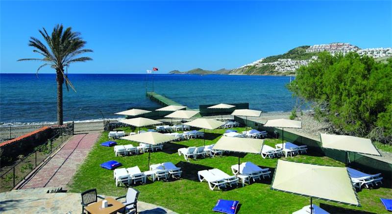 I vendosur ne Gumusluk ne rajonin prane detit Egje dhe rreth 15 min larg nga Bodrumi, aeroporti me i afert eshte ai i Milasit rreth 35min larg. Hoteli ve ne dispozicionin tuaj 167 dhoma. Te gjitha dhomat jane te arreduara ne menyre moderne dhe komode. Ne hotel ju do te gjeni 2 pishina, pishine per femije, kopesht, tarrace,plazh privat, do te keni mundesi te kryeni aktivitete te ndryshme sportive si tenis, bilardo etj. Gjithashtu nuk do te mungojne as qendrat e fitnesit, sauna, dhome masazhi, hamam kend lojerash per femije etj.Baret dhe restorantet : Hoteli operon me sherbimin all inclusive, duke ju ofruar nje shumellojshmeri gatimesh nga kuzhina e pasur turke dhe ajo nderkombetare te cilat sillen ne stilin bufe. Restoranti kryesor sherben mengjesin nga ora 07.00-10.00, dreken ndermjet oreve 12.30-14.00 dhe darken nga ora 19.30-21.30. Snack bar sherben ushqime te lehta dhe te shpejta si pizza, spaghetti etj ndermjet oreve 15.00-17.00. Pool bar eshte ne dispozicionin tuaj nga ora 10.00-24.00, beach bar eshte I vendosur ne mjediset e plazhit ndermjet oreve 10.00-18.00, lobby bar eshte I hapur nga ora 10.00-24.00 ne te cilin ju mund te konsumoni pije te ndryshme alkolike, joalkolike dhe nje variete kokteilesh.
