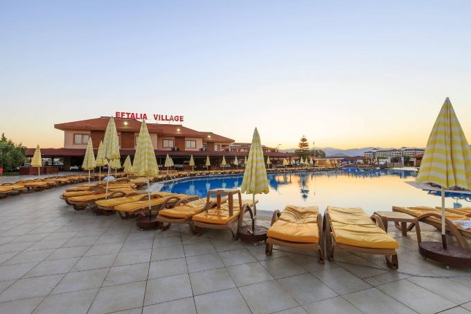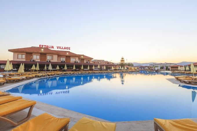 Eftalia Village eshte i vendosur ne zonen turistike Turkler disa metra larg bregut te detit qe laget nga ujrat e detit mesdhe dhe disa kilometra larg qytetit te Alanias dhe 2 ore larg aeroportit te Antalias. Siperfaqja prej 37.700 m2 e hotelit ofron qetesi, relaks dhe pamje te mrekullueshme te zonave perreth. Hoteli ofron nje cilesi te mire sherbimi dhe dhe akomodimi per te gjithe pushuesit e saj duke ju ofruar aktivitete te ndryshme si : qendrer fitnesi, sauna , spa , hamam, masazhe per kujdesin ndaj trupit dhe lekures suaj, terrene sportive ne rere dhe ne fusha te posacme profesionale , sportet e ujit si zhytje , lundrime etj, Aquapark ,rreshqitese etj . Shezlongjet pergjate pishinave te brendeshme dhe te jashtme nuk do te mungojne , po ashtu dhe ne breg te detit per tu clodhur dhe relaksur nen rrezet e diellit duke ju shoqeruar dallget e detit ne sfond . Femijet kane ne dispozicion kendin e tyre te lojrave ,pishinen per femije bashke me rreshqitese , miniclub etj. Hoteli ve ne dispozicion te nje total prej 473 dhomash,te cilat jane : 267 dhoma standarde,43 dhoma te medha ,111 dhoma familjare,48 dhoma treshe,4 dhoma per personat me aftesi te kufizuara. Dhomat jane te arreduara ne menyre luksoze dhe moderne. Baret dhe restorantet : Hoteli operon me sherbimin all inclusive dhe sherben ushqim dhe pije pergjate gjithe dites ne baret dhe restorantet e vena ne dispozicion. Ketu do te keni mundesi te ndryshme perzgjedhjesh ne ushqime nga guzhina turke dhe ajo nderkombetare. Restoranti Kryesor – sherben vaktet ne bufe te hapur nga turke dhe nderkombetare me prodhime te fresketa dhe me mundesi te ndryshme zgjedhjesh. Italian dhe Turkish a la carte restorant- sherbejne darkat tuaja ne ambjent te hapur sipas guzhines italiane dhe asaj mesdhetare turke me ekstra pagese. Ne dispozicionin tuaj do te keni 6 bare te cilat sherbejne pije freskuese vendase dhe te importit , alkoolike dhe joalkoolike , te ngrohta ose te ftohta , kokteile me shije te ndryshme , embelsira , akullore etj.