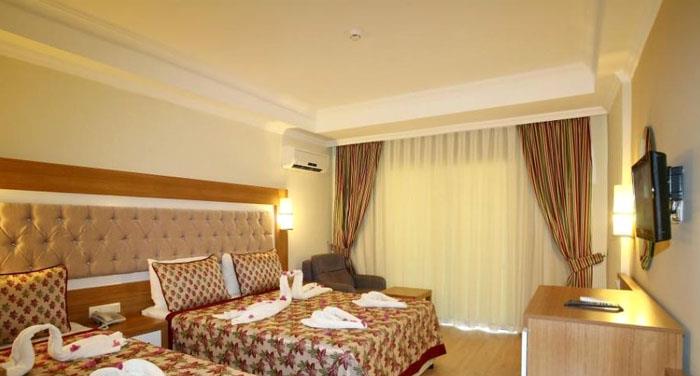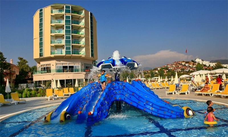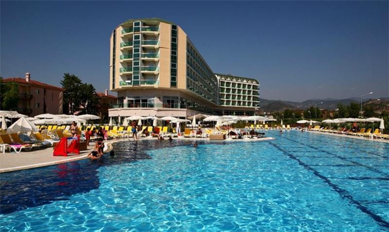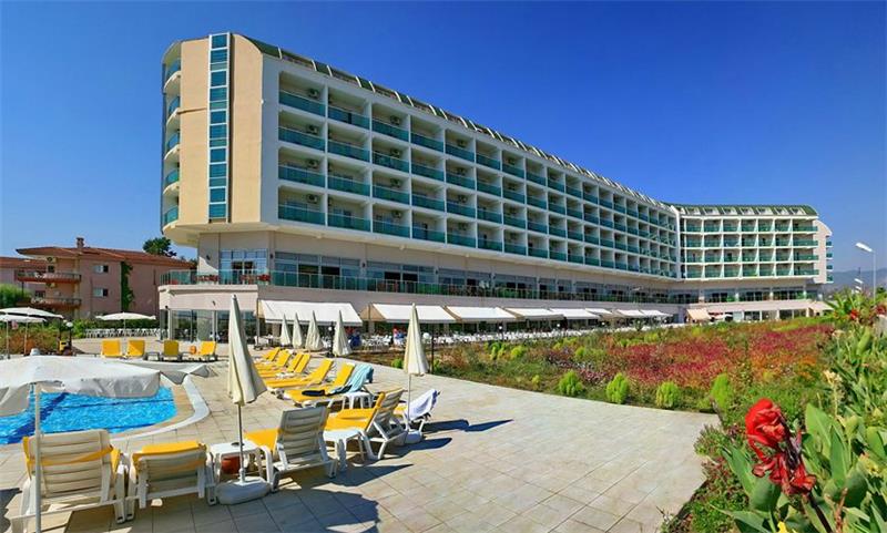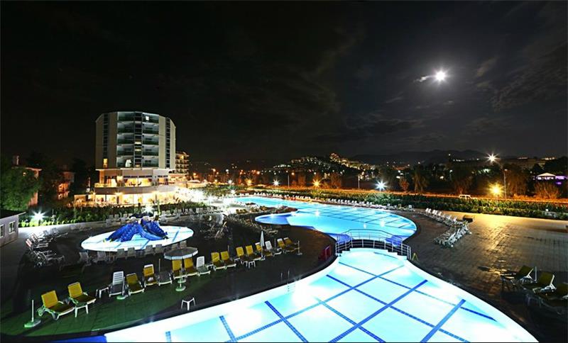 I ndodhur midis bukurise dhe qetesise se Mesdheut, ky hotel eshte ndertuar ne vitin 2012 me nje siperfaqe prej 25000 m2. Hoteli perbehet nga ndertesa kryesore me 5 kate dhe ka 550 dhoma ne total, 540 jane standarte dhe 10 dhoma familjare. Hoteli ofron nje cilesi te larte sherbimi dhe akomodimi per te gjithe te ftuarit e saj . Ky hotel eshte mjaft i preferuar nga familjaret dhe ofron pishine te brendeshme ,te jashtme , pishine per femije , rreshqitese etj. Ne menyre qe pushimet tuaja mos te behen te merzitshme hoteli ve ne dispozicionin tuaj pishine te hapur dhe te mbyllur, pishine per femije, rreshqitese, cadra, shezlongje dhe peshqire plazhi. Animacion, argetim dhe aktivitete sportive gjate gjithe dites, show, amfiteater , muzik live, party ne mbremje, Aerobi ne uje, volejboll ne plazh, basketboll, fushe tenisi dhe pajisje tenisi, table tenisi, dart, disko, mini klub, qender fitnesi, sauna, banjo turke, masazhe te ndryshme, Jacuzzi, spa, parukeri etj. Baret dhe Restorantet :Hoteli operon me sherbimin ultra all inclusive dhe sherben pije dhe ushqime pergjate gjithe dites ne baret dhe restorantet e vena ne dispozicion . Ketu do te gjeni mundesi te ndryshme zgjedhjesh ne gatime sipas shijes dhe deshires tuaj. Restoranti kryesor- sherben te treja vaktet kryesore dhe vaktet e ndermjetme ne bufe te hapur. 3 restorante A La Carte - restorantet a la carta do te sherbejne darkat tuaja ne ambjent te hapur me prodhime turke vendase, me prodhime deti dhe peshku dhe kuzhine mesdhetare. Lobby bar, bar ne plazh, bar ne pishine, vitamin bar dhe disko bar – sherbejne lloje te ndryshme pijesh si ato vendase dhe te importit, alkoolike dhe joalkoolike , pije te ngrohta dhe te ftohta , kokteile te ndryshme shumengjyreshe, embelsira , akullore etj.
