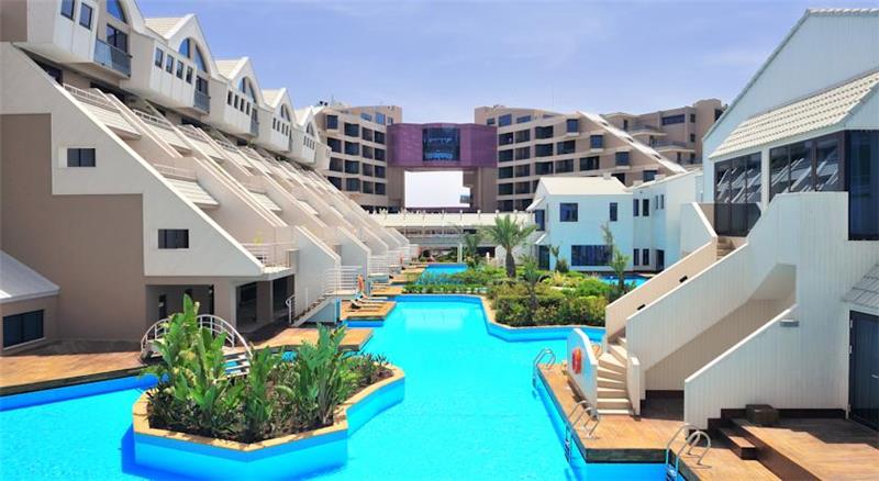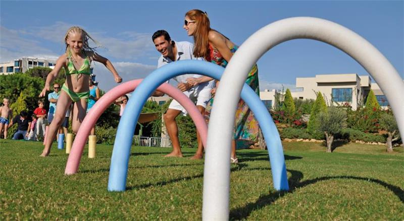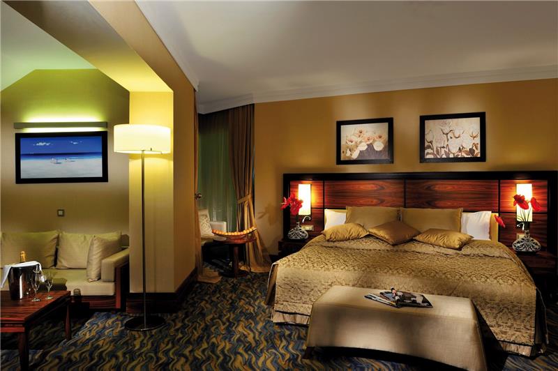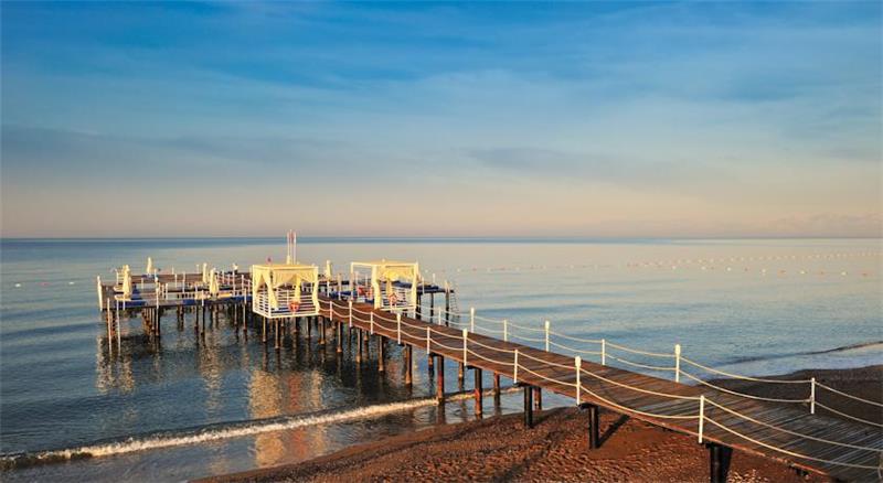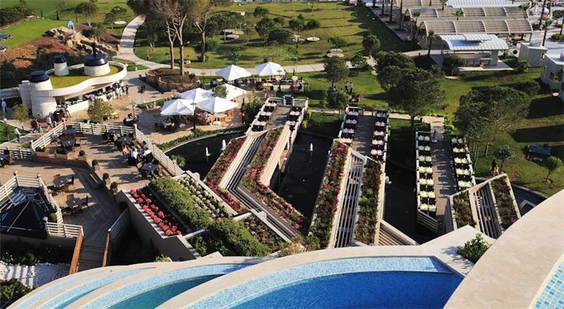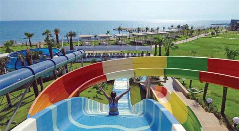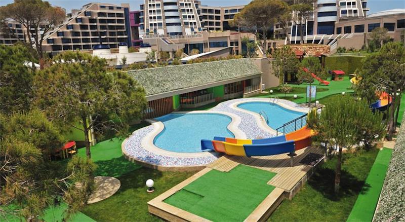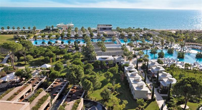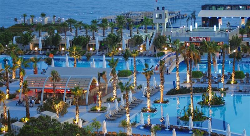 Nje hotel i mrekullueshem qe ndodhet ne zonen me te bukur te rivieres turke me nje arkitekture dhe te vecante ofron nje cilesi te larte sherbimi dhe ambjente luksoze per te gjithe te ftuarit e saj vetem disa metra larg nga rera e arte qe laget nga ujrat e kristalta te mesdheut. I Hapur ne vitin 2007 dhe sip e ketij resorti eshte 90.000 m2 dhe ndodhet vetem 35 min larg nga aeroporti i Antalias. Hoteli eshte i pershtatshem per cifte, te rinje, familjaret dhe femijet e te gjitha moshave. Gjate pushimeve tuaja jo vetem mund te pushoni por mund te kryeni nje sere aktivitesh sportive dhe mundesi te pafundme argetimi dhe clodhje te pershtatshem per te gjitha moshat. Qendra e fitnesit dhe e Spa-ve jane ne dispozicionin tuaj me trajtime te vecanta per trupin dhe lekuren tuaj. Animacionet show-t dhe spektaklet nuk do te mungojne per asnje moment gjate qendrimit tuaj ne kete hotel. Pishine e brendeshme, e jashtme, pishine per femije me rreshqitese, miniclub, kend lojrash dhe kujdestari. Terrene te posacme profesionale ne fusha te posacme dhe ne breg te detit per te gjithe pushuesit qe duan te ndihen vital dhe plot energji, sportet e ujit per te gjithe te apasionuarit e botes ujore dhe nen ujore koralore. Ne total do te keni 552 dhoma luksoze dhe elegante te ndara ne: 152 dhoma delux, 182 standart delux me pamje nga deti, 10 senior suite, 4 junior royal suite, 15 royal suite, 2 king suite. Ndertesa eshte e perbere nga 5 kate. Pushimet tuaja ne kete resort do te jene te mrekulleushme dhe do te keni deshiren e mire per tu rikthyer perseri. Baret dhe Restorantet: Baret dhe Restorantet: Hoteli operon me sherbimin ultra all inclusive dhe sherben ushqim dhe pije pergjate gjithe dites ne baret dhe restorantet e vena ne dispozicion me nje shumellojshme perzgjedhjesh ne gatime nga guzhina turke dhe ajo nderkombetare. Turqoise restoranti kryesor- sherben gatime nderkombetare nga guzhinat me te njohura mbarebotrore. Hapet nga ora 07.00-21.30 dhe sherben vaktet kryesore dhe te ndermjetme ne buffe te hapur ne ambjent te mbyllur dhe ne tarrace. Aqua bistro- eshte nje restorant per te rinjte dhe hapet nga ora 19.00-21.30 . Night snack restroant- ky restorant hapet nga ora 12.00 am – 06.00 am sherben gatime ne oret e vona te nates. Mini club restorant – hapet nga ora 11.30 am -01.00 p.m dhe sherben gatime speciale per femije.6 restroante a la carta do te sherbejne darken tuaj ne ambjente luksoze dhe hapen nga ora 19.00-21.30. Turmana california steak house – eshte e hapur 6 dite ne jave dhe sherben gatime speciale nga guzhina latine me extra pagese. Parika a la carte restorant – hapet 6 dite ne jave dhe sherben gatime speciale nga guzhina me e mire italiane. Casia a la carte restorant – sherben gatime speciaqle nga guzhina aziatike dhe ajo japoneze. Alesta a la carte restorant – sherben gatime speciale me baze peshku dhe prodhime deti. Turga a la carta restorant- sherben gatime speciale nga guzhina turke. Ada mexican restorant- sherben gatime speciale nga guzhina meksikane per te gjithe te apasionuarit e saj. Asian pastiseria – sherben embelsira pergjate gjithe dites. Hayal Lobby bar, Aqua bar, Ada bar - sherbejne te gjitha llojet e pijeve duke filluar nga ato te ngrohtat te ftohtat, alkolike dhe joalkolike vendase dhe te importit, kokteile shumengjyreshe me shije te ndryshme.