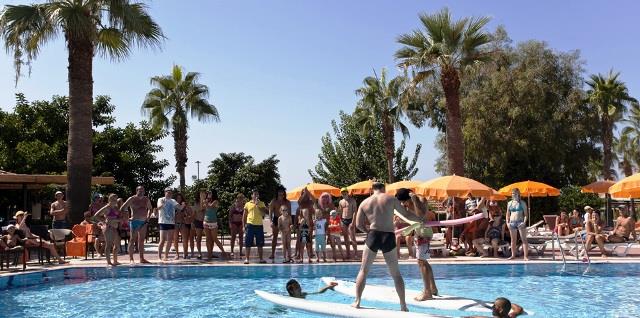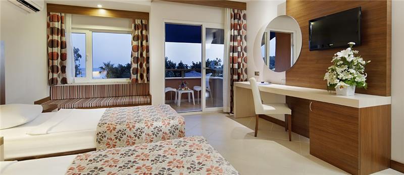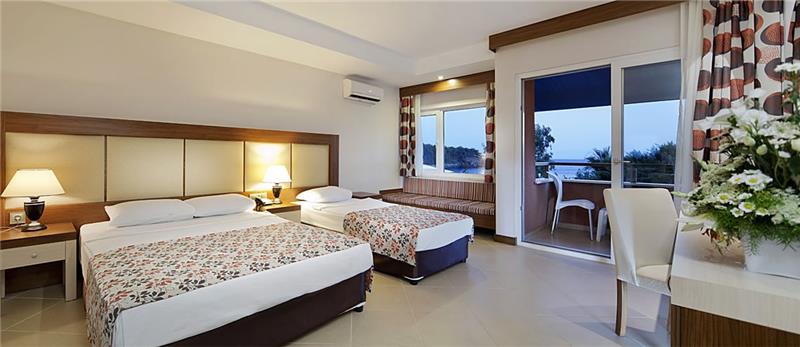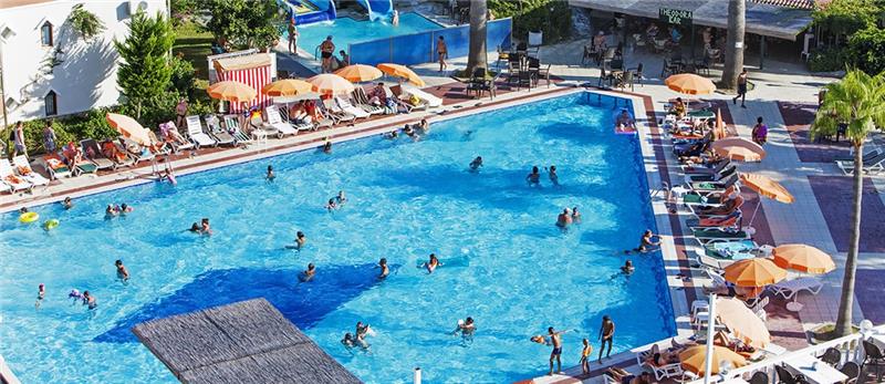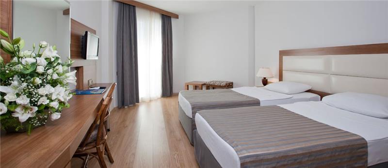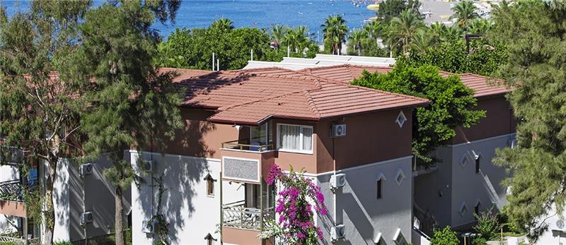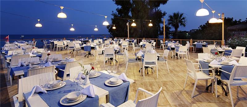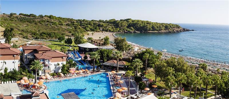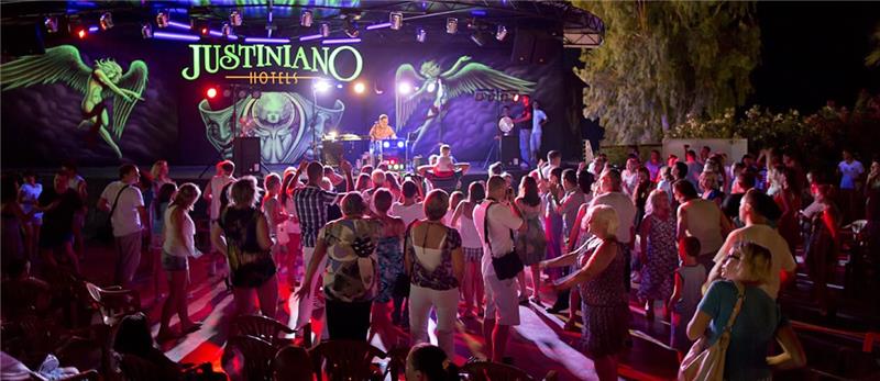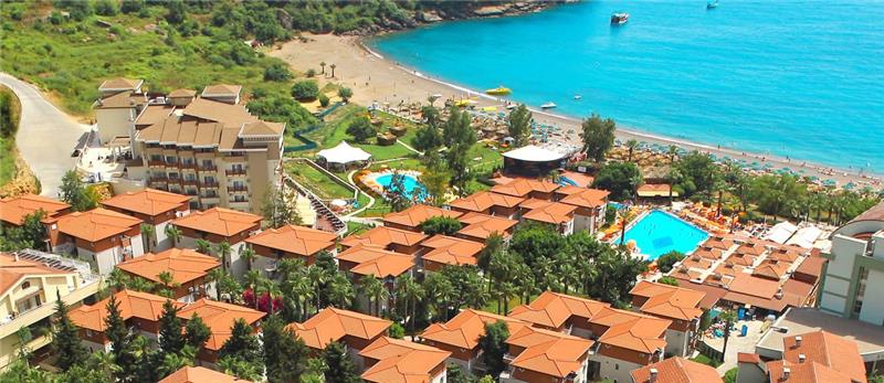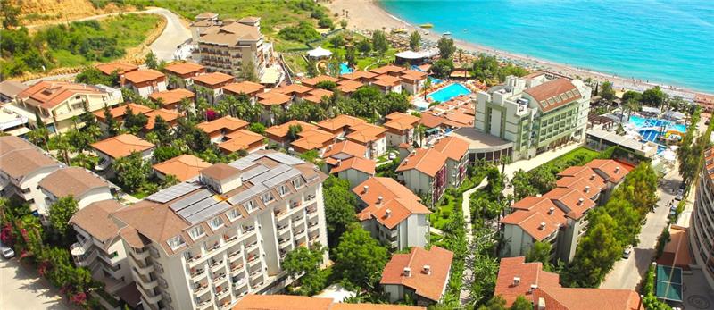 Hoteli ndodhet 2 ore larg me makine nga aeroporti i Antalias dhe 40 min larg qytetit te Alanias. I ndodhur disa metra larg detit me guralec dhe ne mes te gjelberimit hoteli ofron nje panorame te mrekullueshme te zones perreth. Hoteli eshte ndertuar ne vitin 1991 dhe eshte rikonstruktruar ne vitin 2005 ka nje siperfaqe prej 70 000 m2. Hoteli ofron mundesi te ndryshme argetimi dhe clodhje pergjate gjithe qendrimit tuaj ne kete hotel si : terrene sportive per te luajtuar lojrat tuaja te preferuara , sportet e ujit , 1 pishine e jashtme dhe nje pishine per femije , aquapark , shezlongjet pergjate pishinave dhe ne breg te detit do ju japim momete clodhje dhe kenaqesie te panorames se mrekullueshme te zones perrreth, qendrat e fitnesit , jakuzit ,spa-ve , masazheve ofrojne trajtime te vecante per trupin dhe lekuren tuaj. Animacionet , show-t ne amfiteater nuk do te mungojne gjate gjithe qendrimit tuaj ne kete hotel. Ky hotel ka 501 dhoma dhe 1064 shtreter ne total, standarte dhe familjare. Baret dhe restorantet : Hoteli operon me sherbimin all inclusive dhe sherben ushqim dhe pije pergjate gjithe dites ne baret dhe restorantet e vena ne dispozicion. Ketu do te gjeni shumllojshmeri gatimesh me mundesi perzgjedhjesh sipas shijes dhe deshires tuaj. Restorantin kryesor “La Trattoria”- eshte I hapur nga ora 07.00-24.00 sherbehen vaktet kryesore dhe ato te ndermjetme ne bufe te hapur me mundesi zgjedhje nga guzhina turke dhe ajo mesdhetare. Justiniaono club restorant – me pamje nga deti dhe pishina ofron gatime sipas guzhines tradicionale turke. Turkish dhe fish a la carte restorant – sherbejne darken tuaj duke ju ofruar nje pamje te mrekullueshme nga deti dhe pishina per te gjithe te apasionuarit mbas guzhines turke dhe prodhimeve te detit. Kahvehane bar, Begonia Bar ,Theodora Bar, dhe Wine Garden -jane baret e ketij hoteli dhe sherbejne .