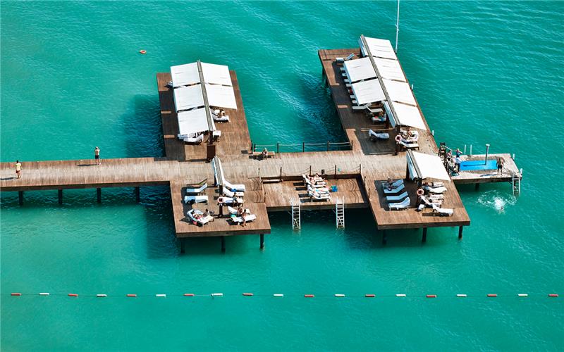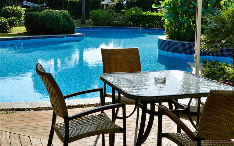 - Shezlonge dhe çadra ne pishine