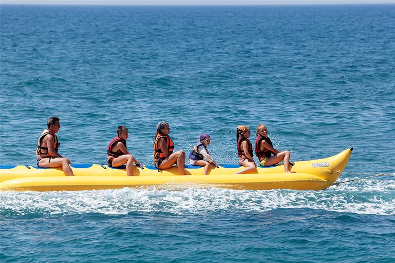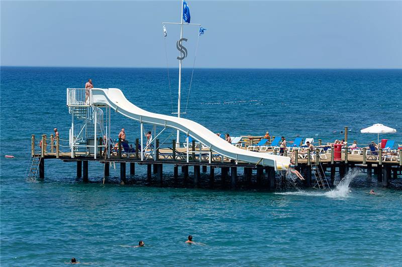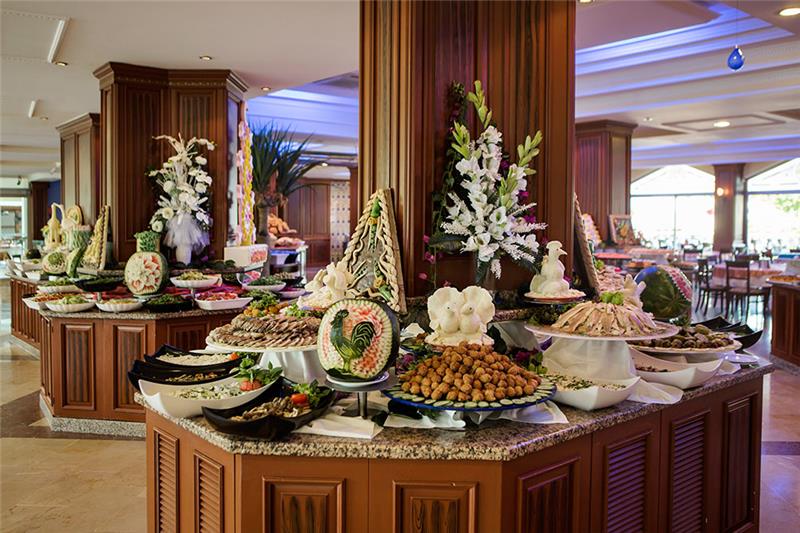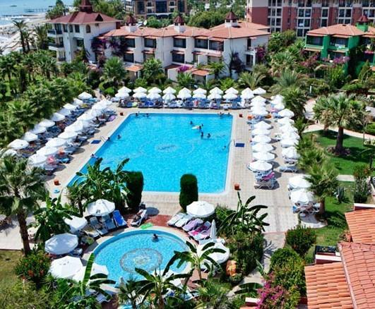 Saphir hotel ndodhet midis gjelberimit te palmave ne breg te deti qe laget nga ujrat e kristalta te detit mesdheut. Ne dispozicion te pushuesve jane ne total 556 dhoma te vendosura ne 2 ndertesa kryesore te ndara. Dhomat jane te ndara ne 422 dhoma ne total dhe 5 villa ne ndertesen e pare dhe 134 dhoma ne total, prej te cilave 64 jane villa standarte, 2 king suites dhe 59 familjare ne ndertesen e dyte. Hoteli ve ne dispozicionin tuaj 2 pishina te jashtme, nje 300 m2 me 3 rreshqitese, me akuapark si dhe me seksion per femijet dhe 1 pishine te brendshme, peshqira, cadra dhe zhezlongje plazhi. Aktivitete sportive, volejboll ne plazh, fushe tenisi dhe pajisjet e tenisit,video game, bilardo, basketboll, mini futboll, table tenis, babysitting, mini klub, disko, internet kafe, sporte ujore , qender fitnesi, banjo turke, sauna, steam room per trajtime te vecanta per trupin dhe lekuren tuaj. Hoteli eshte i pershtatshme per te rinjte , familjeret dhe femijet per te kaluar pushime te mrekullueshme verore. Baret dhe Restorantet:Hoteli operon me sherbimin all inclusive dhe sherben ushqim dhe pije pergjate gjithe dites ne baret dhe restorantet e vena ne dispozicion me nje game te gjere perzgjedhjesh ne ushqim nga guzhina turke dhe ajo nderkombetare. Restoranti kryesor – ka pamje nga kopeshti botanik dhe me pamje nga deti dhe sherben vaktet tuaja kryesore ne bufe te hapur sipas guzhines turke me mundesi te ndryshme perzgjedhjesh ne ushqim. Otoman dhe Italian a la carte restorant – sherbejne ne ambjent te hapur darken tuaj me specialitetet me te mira nga guzhina turke dhe ajo Italiane. Diamond snack restorant – sherben dreken tuaj me gatime te shpejta. Restoranti ofron pamje nga pishina . Turkish pancake house - sherben pije te ndryshme per te gjithe te ftuarit e saj duke filluar nga ato vendase dhe te huaja, alkolike dhe joalkolike , te ngrohta dhe te ftohta , kokteile te ndryshme me fruta.
