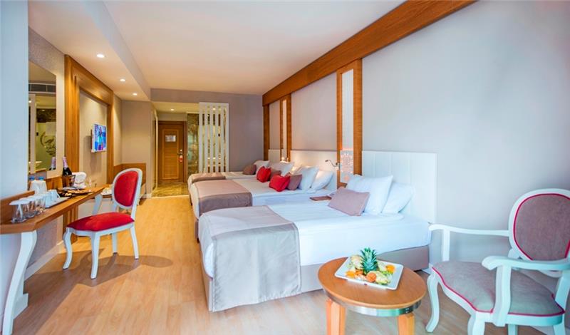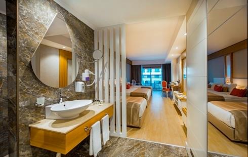 Nje hotel i mrekullueshem qe ndodhet ne pjesen me te bukur te rivieres turke ne ate te Belekut vetem 40 min larg aeroportit te Antalias dhe qendres se saj. Ky hotel ka nje arkitekture unike dhe te vecante ne llojin e saj me nje siperfaqe te gjelberuar prej 50.000 m2 qe ka dalje ne plazhin e tij privat me rere te arte qe laget nga ujrat e kristalta te detit mesdhe. Ne dispozicionin tuaj jane 612 dhoma moderne dhe elegante. Dhomat jane te ndara ne: dhome standarte, dhoma me tarrace, dhoma familjare. Ketu do te gjeni mundesi te pafundme argetimi dhe clodhje sic jane animacionet dhe show-t pergjate gjithe qendrimit tuaj ne kete hotel. Qendra e fitnesit , saunave, spa-ve , banjoja turke jane ne dispozicionin tuaj me trajtime te vecanta per trupin dhe lekuren tuaj. Animacionet show-t dhe spektaklet nuk do te mungojne per asnje moment gjate qendrimit tuaj ne kete hotel. Pishine e brendeshme, e jashtme me rreshqitese, pishine per femije me rreshqitese, miniclub, kend lojrash dhe kujdestari. Terrene te posacme profesionale ne fusha te posacme dhe ne breg te detit per te gjithe pushuesit qe duan te ndihen vital dhe plot energji, sportet e ujit per te gjithe te apasionuarit e botes ujore dhe nen ujore koralore. Baret dhe Restorantet: Hoteli operon me sherbimin ultra all inclusve dhe sherben gatime dhe pije te ndryshme pergjate gjithe dites ne baret dhe restorantet e vena ne dispozicion me mundesi te ndryshme perzgjedhje sipas shijes dhe deshires tuaj. Turkaiz a la carte restorant – sherben vaktet kryesore dhe te ndermjetme ne bufe te hapur me mundesi te ndryshme zgjedhje sipas shijes dhe deshires tuaj. Hapet nga ora 07.00-21.30. Restorantet a la carta do sherbejne darken tuaj ne ambjente luksoze dhe hapen nga ora 19.00-21.30. Turkish a la carte restorant – sherben specialitetet me te mira nga guzhina turke. Paradisoa a la carte restorant – sherben gatimet me te mira nga guzhina nderkombetare. Far Est reatorant - sherben gatime speciale nga guzhina aziatike. Italian a la carte restorant - sherben gatimet me te mira nga guzhina italiane. Fish a la carte restorant - sherben gatime speciale me baze peshku dhe prodhime deti. Barbeque restorant - sherben gatimet me te mira te zgares per te gjithe te apasionuarit e saj. Tarrace bar, lobby bar, space disco bar, flamingo pool bar, service bar, tropicano snack bar, vitamin bar, irish pub - sherben embelsira, caj, kafe dhe te gjitha llojet e pijeve vendase dhe te importit, alkolike dhe joalkolike, te ngrohta dhe te ftohta, kokteile te ndryshme shumengjyreshe etj.