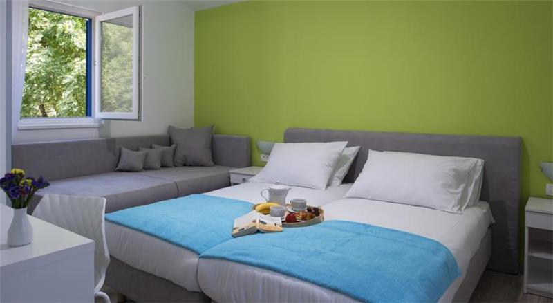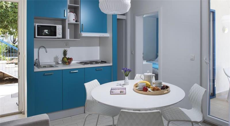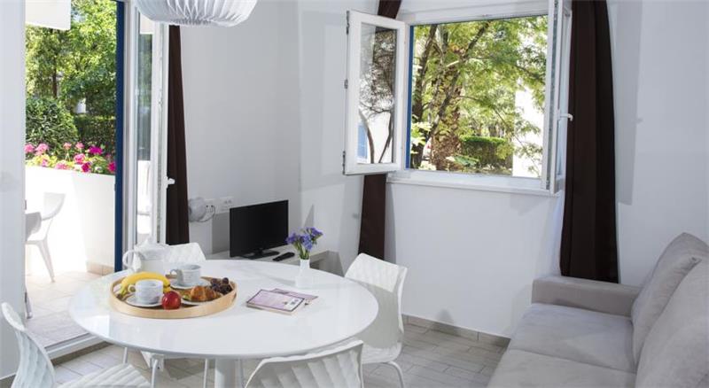 Apartametet Korkyra jane te vendosur ne nje pjese te qete te ishullit te Korcules rreth 5 min larg nga qyteti i vjeter, 3 min larg nga marina si dhe 7 min larg nga porti. Ne total jane 92 apartamente te cilet jane te arreduar ne menyre moderne dhe komode. Apartament Korkyra Garden ofrojne nje pishine te jashtme, kopesht, tarrace,fushe tenisi si dhe plazh privat. Per femijet ofrohet nje miniclub dhe nje kendlojerash. Baret dhe restorantet: Ju do te gjeni nje restorant ne te cilin serviren gatime te kuzhines tradicionale dhe asaj mesdhetare si dhe nje bar ne te cilin mund te shijoni pije te ndryshme si alkolike, joalkolike, vendase dhe te importit.
