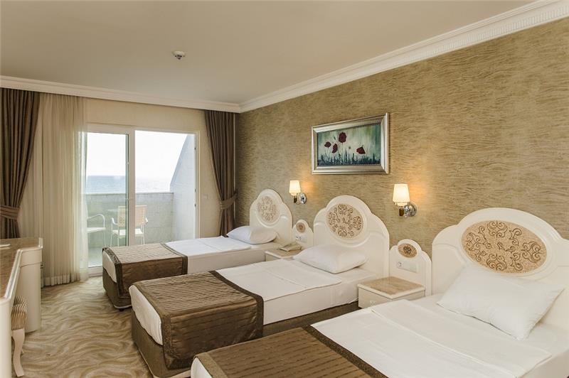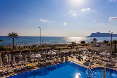 Hoteli ndodhet ne qender te Antalias ne breg te detit qe laget nga ujrat e detit mesdhe. Alania eshte nje qytet mjaft i bukur turistik, historik dhe kulturor me keshtjellat e mrekullueshme qe mbartin histori shumevjecare qe presin te vizitohen nga syte kureshtare te turisteve vendas dhe te huaj. Hoteli ofron nje cilesi te larte sherbimi dhe akomodimi per te gjithe pushuesit e tij me nje standart me 5 yje. Ne kete hotel aktivitetet nuk do te mungojne sic jane: terrenet sportive m sportet e ujit , qendrat fitnesit , jakuzi ,spa dhe sauna per kujdesin ndaj trupit dhe lekuren tuaj, animacionet dhe show-t pergjate dites dhe mbremjeve . Hoteli ve ne dispozicion te pushuesve 165 dhoma standarte , 4 junior suita dhe 4 dhoma familjare. Dhomat jane te arreduara me kushte moderne dhe elegante. Ky hotel eshte i pershtatshem per ciftet qe duan aventuren argtimin dhe relaksin ne rivieren e bukur Turke. Baret dhe restorantet – Hoteli operon me shebimin all inclusive dhe sherben ushqim dhe pije pergjate gjithe dites dhe nates ne baret dhe restorantet e vena ne dispozicion me nje shumllojshmeri gatimeshe dhe perzgjedhjesh me specialitet me te mira nga guzhina turke dhe ajo nderkombetare. Restoranti Kryesor – sherben vaktet kryesore ne bufe te hapur me mundesi te ndryshme zgjedhjesh sipas deshires tuaj. Loby bar , pool bar , beach bar - sherben te gjitha llojet e pijeve duke filluar nga ato te imporit dhe vendase , alkolike dhe joalkolike , te ngrohta dhe te ftohta , akullore dhe embelsira si dhe kokteile te ndryshme shumengjyreshe, akullore embelsira etj
