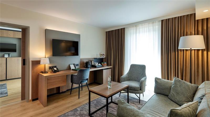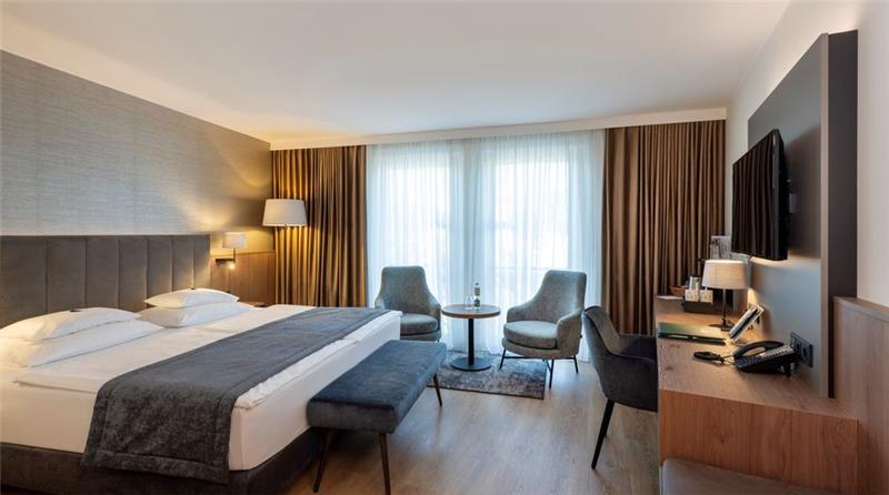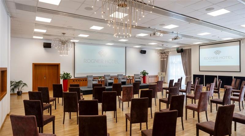 Rogner: Vendi ideal për vendimarrje të suksesshme! Ndër shumë hotele... spikat Rogner Hotel Tirana. Eshtë hoteli me vendodhjen më të mirë në qytet dhe hoteli i parë në Shqipëri i ndërtuar sipas standarteve ndërkombëtare, i pozicionuar në bulevardin kryesor “Dëshmorët e Kombit”, në zemër të Tiranës. Mikpritja dhe shërbimi, komoditeti dhe siguria bëjnë që hoteli të jetë vend takimi për elitën ekonomike, diplomatike dhe kulturore të Shqipërisë. Selia e Kuvendit, Presidenca, Kryeministria dhe shumë ambasada të rëndësishme ndodhen vetëm disa hapa larg hotelit. Për biznes apo thjesht për kënaqësi: ju keni zgjedhur vendin e duhur. Hoteli juaj për biznes në Tiranë, Shqipëri Mund të na keni përzgjedhur për shkak të vendodhjes strategjike, për shërbimin dhe mikpritjen legjendare Austriake, për mundësinë e krijimit të një rrethi social elitar apo për bukuritë e kopshtit tonë... Por cilado të jetë arsyeja, e kemi për kënaqësi t’ju mirëpresim dhe të sigurojmë një qëndrim sa më të frytshëm e më komod të jetë e mundur. Hotel biznesi në mes të gjelbërimit. Hotel biznesi dhe turistik në të njëjtën kohë. Rogner Hotel Tirana me kopshtin e mrekullueshëm Mediterran ofron një oaz qetësie në zemër të kryeqytetit. 138 dhomat e arreduara më së miri - 114 dhoma dopjo, 10 junior suita si dhe 14 suita– ofrojnë komfort internacional dhe një pamje të mrekullueshme nga kopshti madhështor mesdhetar me pishinë ose nga bulevardi më i bukur i Tiranës. Kopshti Në mes të gjelbërimit, Kopshti i mrekullueshëm Mediterran ju fton të përjetoni një eksperiencë unike relaksi dhe qetësie gjatë qëndrimit tuaj. Do ta gjeni veten të rrethuar nga natyra e gjelbëruar edhe pse në qendër të qytetit. Për të gjithë sport-dashësit është në dispozicion gjatë gjithë vitit fusha e tenisit dhe e mini-golfit. Pranë pishinës do të ndiheni të tunduar për një zhytje apo një kokteil freskues në Bubbles Bar. Salla konference dhe banketesh të përshtatshme për mbledhje dhe evente. Eventet më të rëndësishme lokale e ndërkombëtare në formën e konferencave të mëdha, konferenca shtypi apo takime private mbajnë vulën e „Rogner Hotel Tirana“. Skuadra e departamentit të eventeve është në dispozicionin tuaj për t’ju mundësuar një organizim profesional të plotë. Vendi ideal për eventin tuaj. Ne njihemi si “Vendi i Takimeve” dhe kjo falë vendodhjes strategjike dhe shërbimit superior për eventet tuaja. Lini një përshtypje mbreslënëse tek të ftuarit, partnerët e biznesit apo tek të afërmit tuaj, pasi Rogner Hotel Tirana është krijuar posaçërisht për të organizuar festa dhe ceremoni. Mes „Tafelspitz“ dhe "Fërgesës Tiranase" Restorant Apollonia, i pagëzuar me emrin e një qyteti të lashtë shqiptar, ka një arkitekturë të përshtatshme për evente, pritje madhështore dhe dasma. Shefi Austriak i kuzhinës do ju mahnisë me ndërthurjen e shijeve nga delikatesat Mediterrane dhe specialitetet tradicionale Austriake. Kafe – Bar me muzikë Live Dëshironi ta filloni ditën me kafenë e mëngjesit duke shfletuar shtypin ndërkombëtar, të përfundoni një marrveshje të suksesshme biznesi apo të shijoni një kokteil të veçantë në një atmosfere mikpritëse? – Ky është vendi ideal. Këtu çdo javë do argëtoheni nga programe me muzikë Live gjatë muajve të dimrit dhe nga Netët Latine gjatë verës. Bubbles Bar, një kokteil buzë pishinës. Vend takimi i preferuar gjatë muajve të verës si për elitën e biznesit dhe për turistët ku mund të shijohet një kokteil freskues apo të organizohen ceremoni madhështore pranë pishinës së rrethuar nga gjelbërimi i palmave. Zgjedhja e përkryer për evente dhe dasma. Zgjidhni ti bëni të paharruara eventet tuaja më të rëndësishme të organizuara në formën e darkave gala, pritjeve me kokteil apo të celebroni dasmën tuaj dhe të zgjidhni mes zonave të ndryshme si Restorant Apollonia, tarraca e restorantit apo zona e kopshtit dhe e pishinës. Vendi ideal për ditën tuaj më të rëndësishme. Besojini emrit të mirë që kemi ndërtuar ndër vite, intuitës dhe profesionalizmit për të realizuar dasmën e ëndrave tuaja. Fillojeni ceremoninë me puthjen e parë si „Burrë e Grua“ për të mirpritur më pas të afërmit tuaj në zonën e pishinës me një dekorim të personalizuar dhe të përjetoni mbrëmjen gala në Restorant Apollonia.