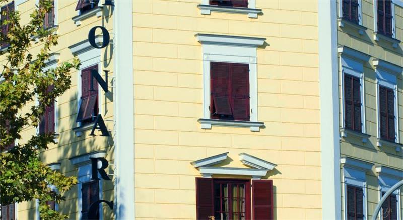 Zgjedhja perfekte ne Tiranë! I vendosur ne kryqezimin e rrugës “G. W Bush “ dhe Bulevardit “Zhan d’Ark “. Hotel MonarC eshte sinonim i elegances dhe luksit te ndërthurura me modernen dhe bashkëkohoren. I ndodhur në qëndër te qëndres historike te Tiranës, 12 dhomat te dizenjuara me artin dhe teknologjine e viteve te fundit përfshijnë internet, ajer te kondicionuar, TV kabllor, telefon, banjo private me tharese flokesh etj. Gjithashtu hoteli dizpononi 2 salla seminaresh, nje bar te bukur ne tarrace dhe nje resorant te mrekullueshem, I dekoruar dhe mobiluar me shije, madheshtia e resorantit eshte plotesuar nga kuzhina mesdhetare dhe e gjitha kjo arrihet nga sherbimi i personalizuar. Tirana thjesht nuk do te ishte njelloj pa Hotel MonarC!