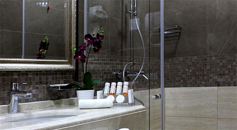 I ndertuar ne 2001, Hoteli me kater yje eshte I pozicionuar ne zemer teTiranes, ne zonen e “Bllokut”, vetem disa metra larg bulevardit, Presidences,ambasadave kryesore si dhe selive qendrore te organizatave te huaja. Nuk ka vend me te paqte se ky, nje pervoje e pakrahasueshme. Hoteli ideal per udhetime biznesi. Ne kemi vendin ideal per tu mbledhur sebashku me miqte ose bashkepunetoret tuaj dhe te shijoni nje vakt te mire. 31 dhomat e hotelit ofrojne pamje te kendshme te qytetit. Dhomat jane te arreduara me elegance dhe me pajisje te standartit te larte. Ato ofrojne nje ambient klasik dhe te vecante ne Tirane. Do te ndiheni shume komod dhe “ si ne shtepine tuaj”. Ambjenti relaksues I restorantit, ju jep mundesine te shijoni pjata te shijshme tradicionale dhe Mesdhetare. Bari I Hotel Grand Tirana eshte pjese e nje holli impresionues. Eshte vend-takim ku nje klientele prestigjoze shijon nje shumellojshmeri pijesh te ngrohta dhe te ftohta. Vendi me I mire per takime jo zyrtare dhe” per te vezhguar njerezit”, madje edhe ne oret e vona. Cdo dite sherbehet mengjes bufe si dhe vaktet e tjera me menu zgjedhjeje. You can have a good relaxing time in our indoor swimming pool, sauna, hydromassage and massage. Vend elegant per te gjitha eventet tuaja te biznesit dhe shoqerore.Grand Hotel Tirana ju ofron nje larmi te pakrahasueshme te dhomave te takimit dhe stukture lehtesuese per konferenca dhe takime.