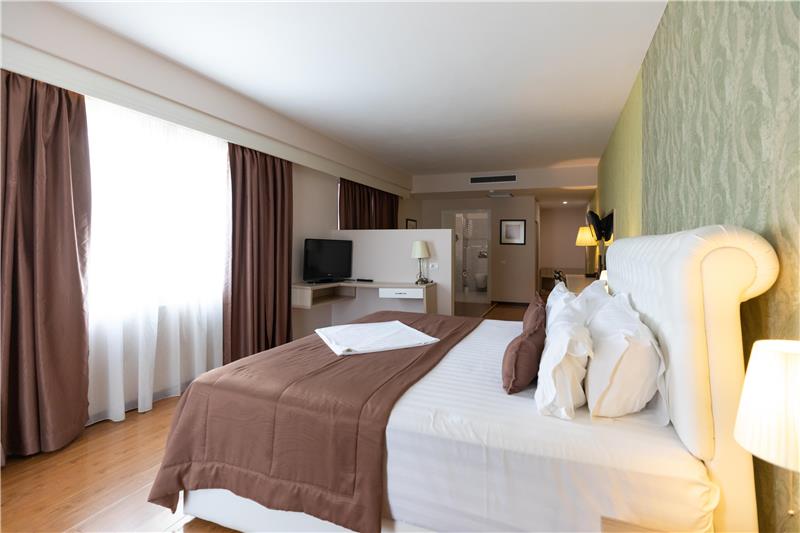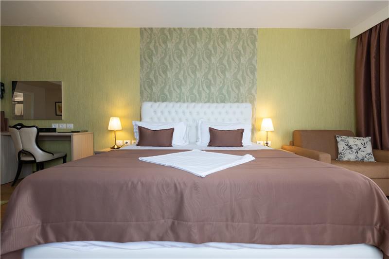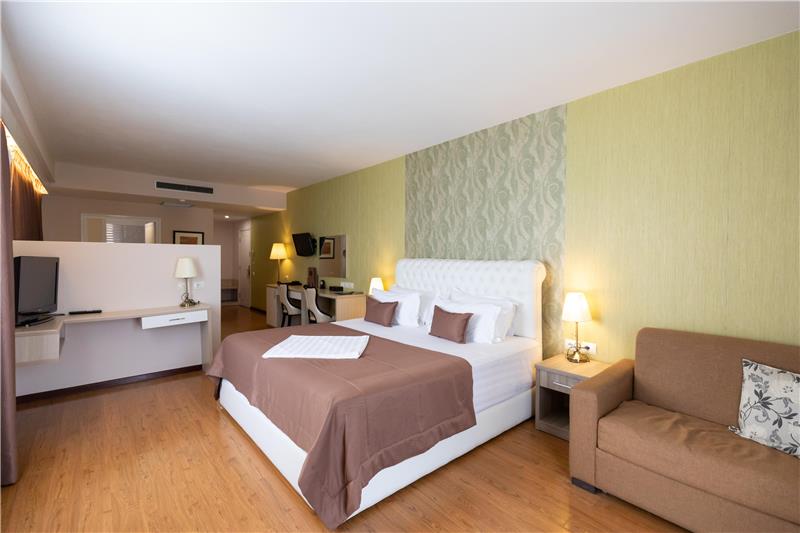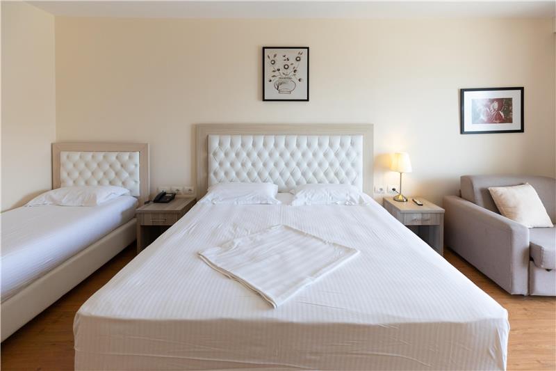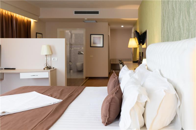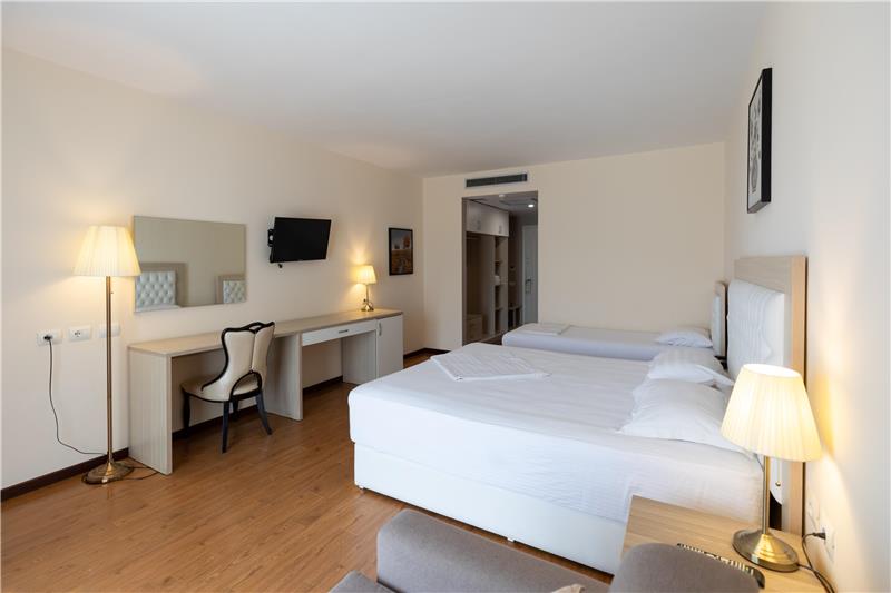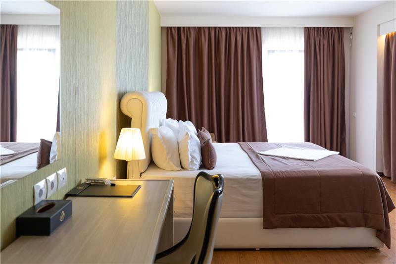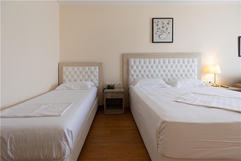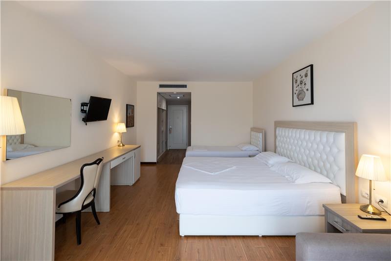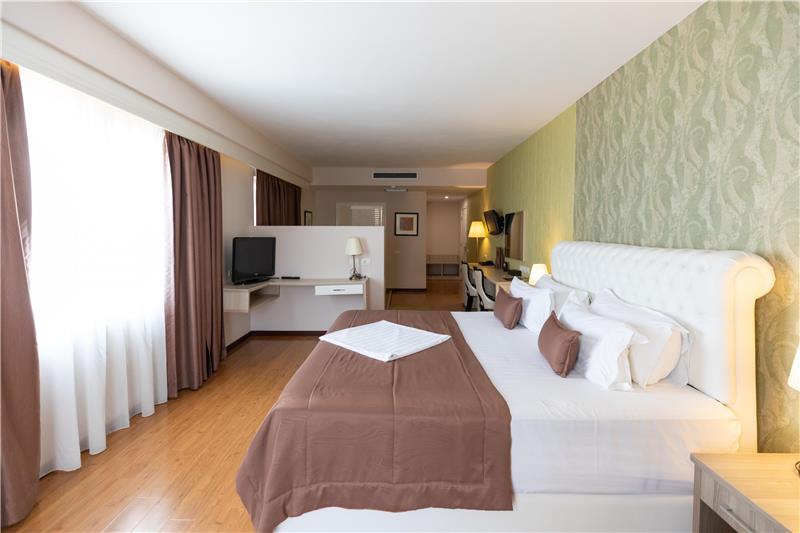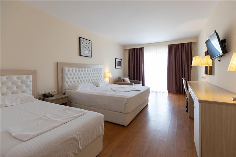 Hoteli ka dhoma dyshe, treshe, familjare për 4 persona dhe Suita Junior luksoze me vaskë të nxehtë. Shumica e dhomave kanë ballkone (vetëm 11 dhoma në hotel janë pa ballkone). Çdo dhomë vjen me ajër të kondicionuar, TV me ekran të sheshtë, mini frigorifer, kasafortë, telefon për t'u lidhur me pritjen, gardërobë dhe tavolinë pune, banjo private me dush, tharëse flokësh, pantofla banjoje, peshqirë dhe artikuj tualeti falas.