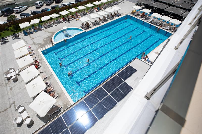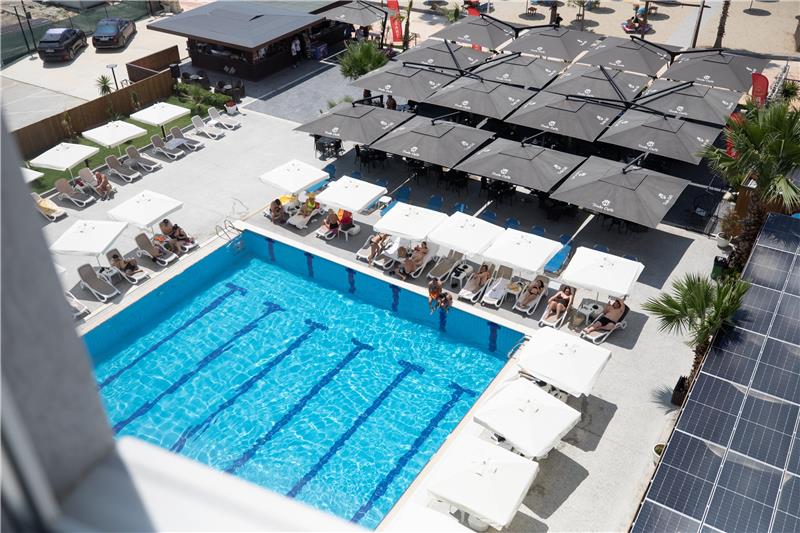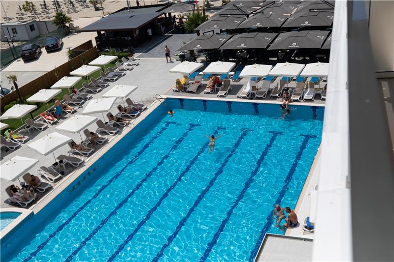 - Shezlonge dhe çadra ne pishine