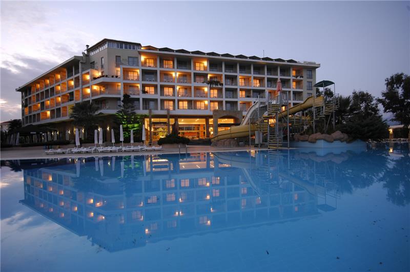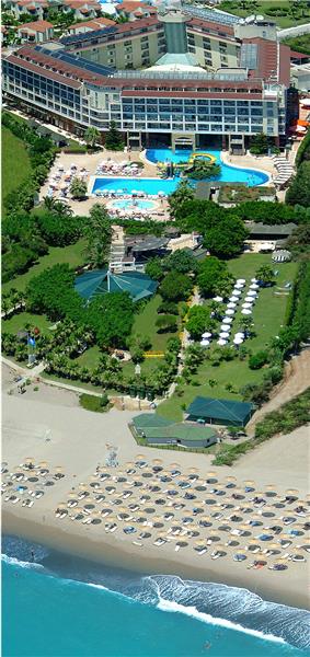 I vendosur midis gjelberimit dhe bukurise natyrore te zones turistike te Sides vetem disa larg metra larg bregut te detit me rere te arte qe laget nga ujrat e kristalta te detit Mesdhe shtrihet ne menyre madheshtore ky resort i mrekullueshme duke ofruar nje panorame te mrekullueshme te gjirit te Antalias si dhe clodhje & argetim per te gjithe pushuesit e tij. Resorti eshte mjaft luksoz dhe ofron mundesi te pafundme argetimi dhe clodhje sic jane : abimacionet , show, muzike live pergjate gjithe qendrimit tuaj ne kete hotel , pishine e brendeshme dhe e jashtme me rreshqitese , pishime per femije, qender fitnesi, Spa-je , sauna , masazh me trajtime te vecante per trupin dhe lekuren tuaj, kend lojrash per femije etj. Hoteli disponon 305 dhoma luksoze dhe elegante per nje qendrim akoma dhe me te rehatshme dhe pushime akoma dhe me te bukura. Baret dhe restorantet - - hoteli operon me sherbimin all inclusive dhe sherben ushqim dhe pije pergjate gjithe dites ne baret dhe restorantet e vena ne dispozicion duke ju ofruar nje shumllojshmeri zgjedhjesh nga guzhina turke dhe ajo nderkombatare. Restoranti kryesor - sherben te gjitha vaktet kryesore dhe ato te ndermjetme ne bufe te hapur me mundesi zgjedhje sipas deshires tuaj. Restoranti ofron panmje nga deti dhe nga gjiri i Antalias. Italian a la carte restorant - sherben darken tuaj me specialitetet me te mira nga guzhina italiane e sherbyer ne ambjent te hapur duke ju ofruar nje pamje te mrekullueshme nga deti dhe gjiri i Antalias.Loby bar , beach bar , pool bar - sherbejne pije te ndryshme duke filluar nga ato alkolike dhe ato joalkolike , te ngrohtat dhe te ftohtat , akullore dhe embelsira si dhe kokteile te ndryshme shumengjyreshe.