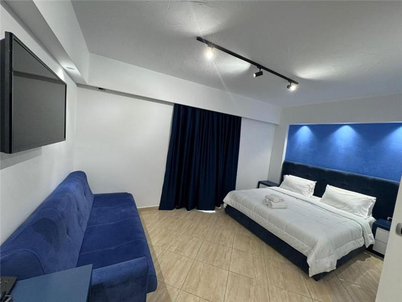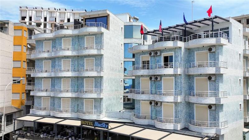 Vetëm 2.5 km larg qendrës së Sarandës drejt Ksamilit hotel Bluye Sky ofron një qëndrim të rehatshëm me pamje të mrekullueshme nga deti Jon dhe ishulli i Korfuzit. Këtu ka një bar dhe një restorant të kuzhinës mesdhetare dhe tradicionale shqiptare në katin e parë, recepsion 24 orë, depo për bagazhe, shërbim lavanderi dhe pastrim kimik, këmbim valutor, kasafortë në recepsion, parkim falas dhe WiFi.