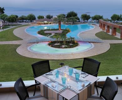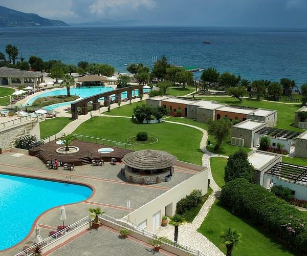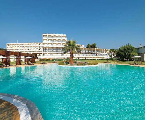 Corfu Chandris Hotel eshte i vendosur ne mes te kopeshteve dhe zones se mrekullueshme te Dassia, ofron pamje te mrekullueshme te detit Jon dhe ishullit mbreslenes. Cdo gje eshte ne nje distance te afert me resortin dhe ka nje pozicion mjaft te preferuar nga pushuesit. Eshte vendi ideal per shetitje romantike ne Dassia Bay, ne nje distance te shkurter nga qyteti i Korfuzit. Hoteli eshte nje oaz i vertet pushimi, relaksi dhe luksi. Eshte nje nder hotelet me akomodimin me te vleresuar dhe lukzos pergjate gjithe ishullit te Korfuzit, ndodhet ne breg te detit dhe disponon plazhet e tij private. Ve ne dispozicion te pushuesve 213 dhoma, 28 bungalow dhe 36 villa dhe apartamente. Baret dhe restorantet: Ne kete resort do te gjeni te gjitha llojet e ushqimit nga ai tradicional grek , italian , frances , etj. Keto ofrohen ne amjente si restoranti ose tarraca e hotelit per te soditur peisazhin e mrekullueshem. Alkinoos Restorant ndodhet ne Lobi dhe sherbehen te trija vaktet me mundesi te pasur zgjedhje dhe mjaft te shijshme. Tratoria Netuno sherben ushqim italian , eshte nje vend mjaft romantik per dreken ose darken tuaj. Grill House ofron pitet e mrekullueshme greke , sandwich etj. Acqua Restorant sherben menu a la carta dhe restoranti ofron gatime me prodhime mesdhetare. Baret jane: Nafsika Bar i cili eshte bari kryesor i hotelit qe servir te gjitha llojet e pijeve. Horizon Bar i cili gjendet ne zonen e pishines dhe duke servir pije te ngrohta dhe te ftohta per te rritur dhe femije , akullore etj dhe Esperides Bari ne plazh.