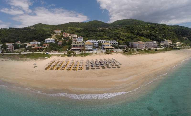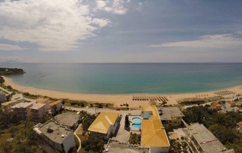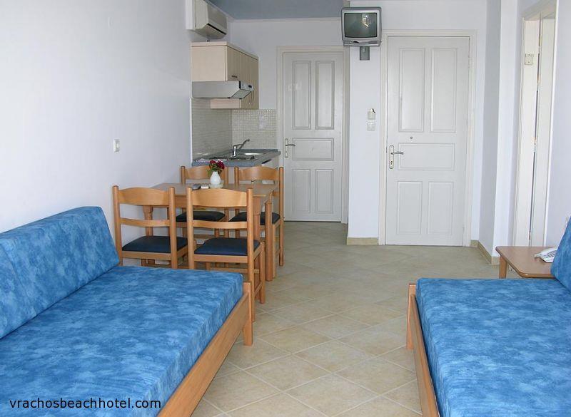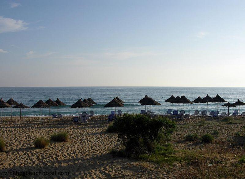 Në një nga plazhet më të bukura të detit Jon do të gjeni Hotel Vrachos Beach. 3 km nga plazhi me rërë një det i pafund do t’ju prese për të notuar, luatur lojra apo thjeshte te ecni pergjate bregdetit. Hoteli është i formuar nga katër ndërtesa me studio dhe apartamente, një recepsion, restorant-bar dhe një pishine. Studiot dhe Apartamentet kanë një kuzhinë të pajisur plotësisht (me aparat kafeje), ajer te kondicionuar, TV Satelitor, Telefon. Hapësira parkimi mund të gjendet brenda zonës së hotelit. Poolbar: Në barin prane pishinës ju mund të shijoni lëngje të freskëta, akullore, kafe dhe kokteje. Restaurant: Në restorant të gjitha ushqimet qe sherbehen janë nga kuzhina Greke tradicionale, peshk i freskët dhe specialitete për të gjitha shijet. Rëra e arte, deti blu dhe pemët jeshile të ullirit janë ngjyrat që rrethojnë hotelin. Plazhi I hotelit ofron cadra dielli dhe shtretër falas.