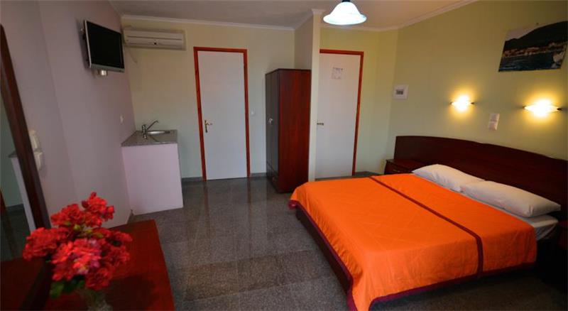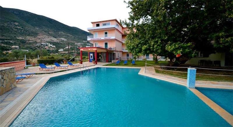 Kalias hotel ndodhet ne ishullin e bukur te Lefkades, ne pjesen jugore te quajtur Vasiliki. Vasiliki eshte nje nga vendet me te bukura per wind surfing ne bote. Hotel Kalias ndodhet vetem 150m nga plazhi i Vasilikise me sport ujore. I vendosur mes nje kopshti te bukur, ofron nje pishine per te rritur dhe per femije, sanck bar prane pishines dhe internet WiFi falas. Per femijet ka nje kend lojrash. Hoteli disponon gjithesej 20 dhoma komode dhe moderne, te gjitha jane te pajisura me ajer te kondicionuar, TV satelitor, minibar, banjo me tharese dhe dush. Stacioni i autobusit ndodhet perpara hotelit. Pushuesit mund te gjejne tavern dhe dyqane te tjeta ne nje distance prej 500 metrash. Porti i Nidrit ndodhet 20km larg dhe qyteti i Lefkades 38km larg. Hoteli ofron parkim falas