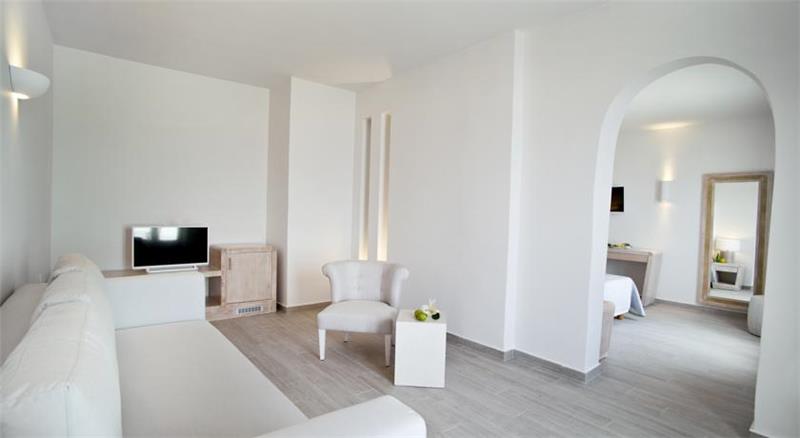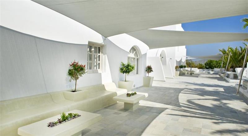 Santorini palace eshte nje nga hotelet e pare te ndertuar ne Santorini vetm pak metra nga shkembi i Calderes dhe me pamje panomramike. Ne dispozicionin tuaj do te jene 106 dhoma te dekoruara me stil dhe te pershatura per shijet e gjithsecilit. Pushuesit kane avantazhe te shumta dhe mundesi argetimi ne ambientet e ofruara per ta, ata mund te relaksohen ne pishinen e hotelit,nje qender spaje e cila ofron Jacuzzi, banjo turke, sauna dhe dhome massazhi. Per femijet ofrohet nje pishine ne te cilen ata mund te luajne dhe argetohen me njeri tjetrin. Baret dhe restorantet: Main restaurant sherben mengjesin ne menyre amerikane, dreken dhe darken ku ju servir produkte vendase dhe receta tradicionale. The pool snack bar ju jep mundesine te shijoni ushqime te lehta, barbeque dhe pije te ndryshme. Main bar ofron gjate darkes pije te shumta dhe kokteile.