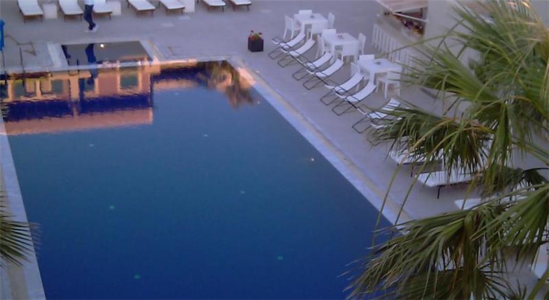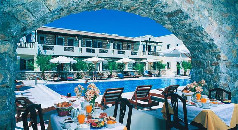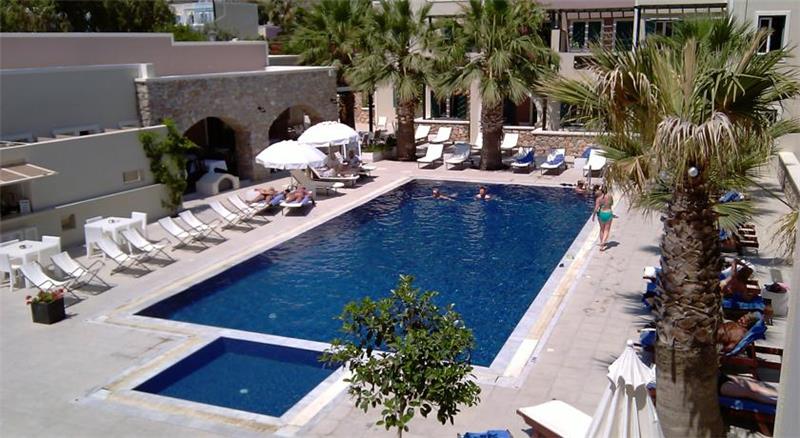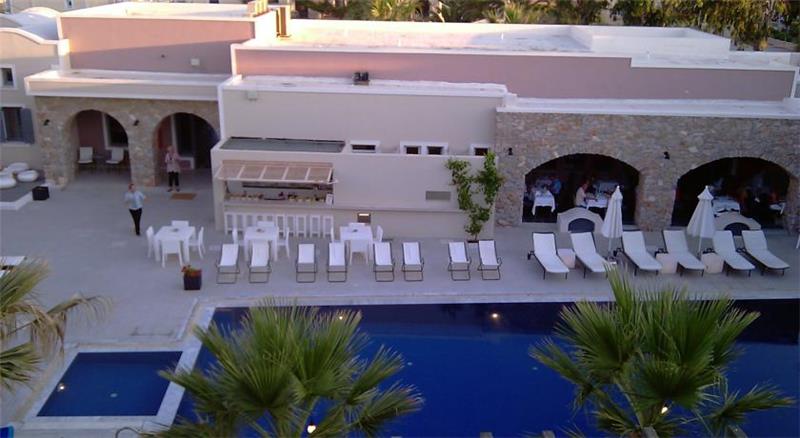 Rosebay hotel eshte pjese e grupit te hoteleve G&E Karamologos Group , eshte nje hotel elegant i cili eshte vetem 2 min larg nga rera e zeze e plazhit te Kamarit dhe 7 min larg nga aeroporti i Thires. I vendosur ne pjesen me te qete te ishullit, hoteli ofron mjedise relaksuese dhe clodhese. Ne dispozicionin tuaj jane 55 dhoma ku 2 prej tyre jane te pershatura per personat me aftesi te kufizuar gjithashtu ju do te keni ambiente te vecanta ne te cilat ju mund te organizoni dasmen e enderrave tuaja. Hoteli ofron pishine te jashtme, pishine per femije, palester, library dhe nje fushe tenisi. Baret dhe restorantet: Pool bar restaurant ofron megjesin dhe dreken ku sherbehen ushqime nga kuzhina greke dhe ajo mesdhetare te servirura ne bufe te hapur dhe te pasur. Pool bar eshte i vendosur ne mjediset prane pishines dhe ofron nje shumellojshmeri pijesh dhe koktelie shumengjyrshe.