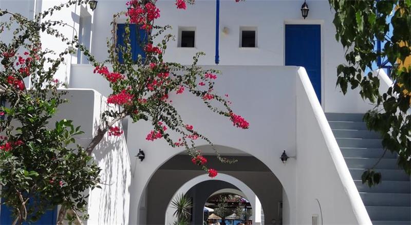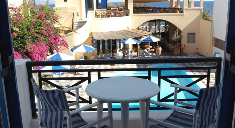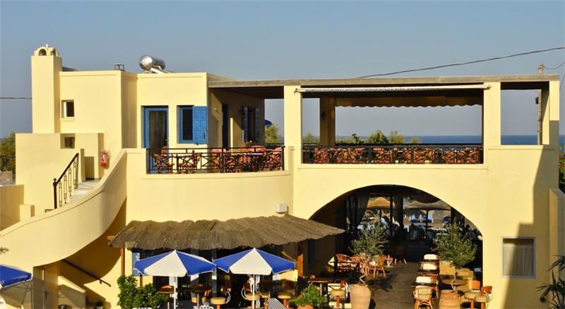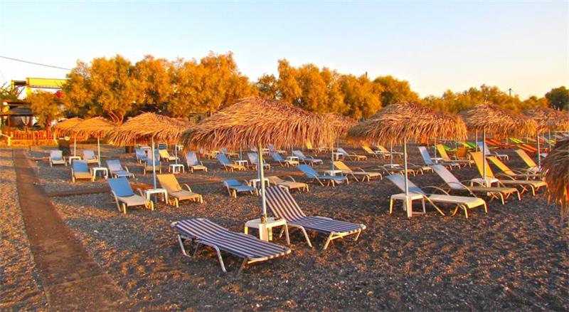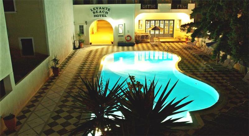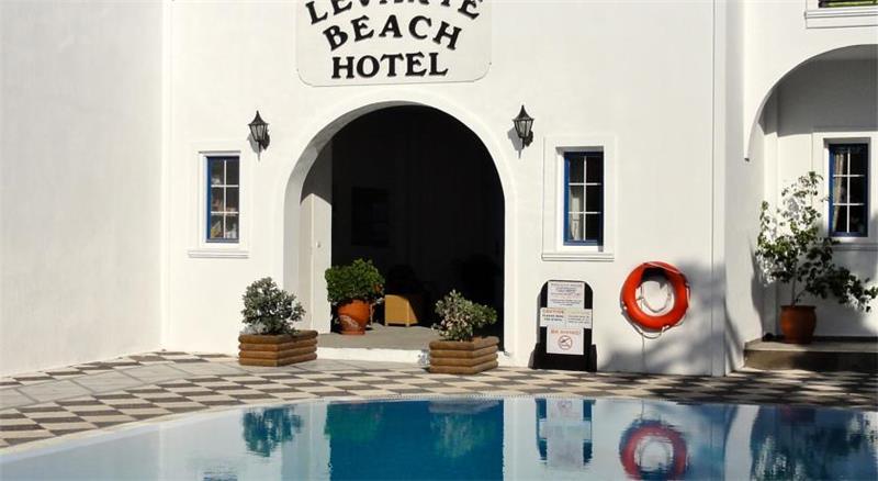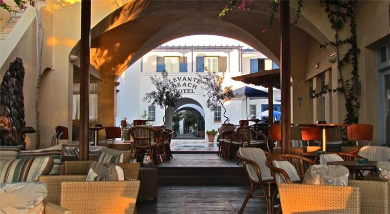 Levante Beach ndodhet prane Plazhit te Kamarit. Fshati eshte i njohur per dyqanet, kafenete, tavernat dhe restorantet e shumta. Hoteli disponon 46 dhoma te dekoruara me stil tradicional. Te gjitha dhomat jane te pajisura me ajer te kondicionuar, Tv Satelitor, telefon, minibar, kasaforte, ballkon ose verande. Mengjesi sherbehet cdo dite ne veranden e katit te dyte me pamje nga deti. Perballe hotelit ndodhet Caffe Bar Rastuarant levante ku sherbehen specilaitete lokale, kafe e pije te ndryshme gjate gjithe dites. Hoteli ka nje pishine ne natyre me shtreter dhe cadra dielli. Recepsioni i hotelit mund te organizoje eskursione te ndryshme per te vizituar ishullin.