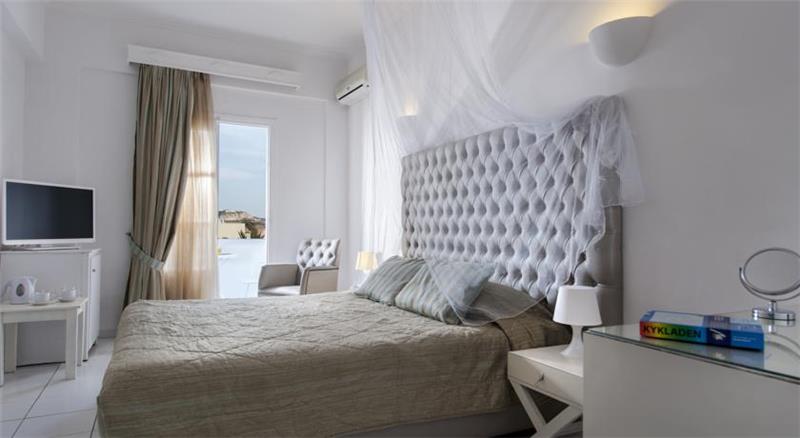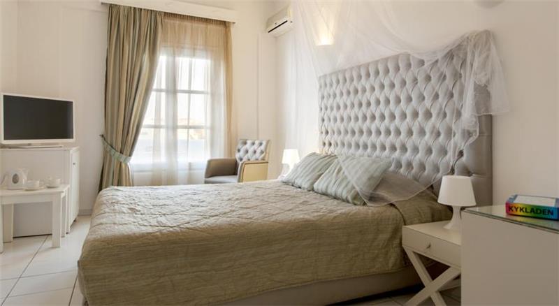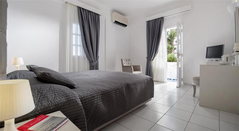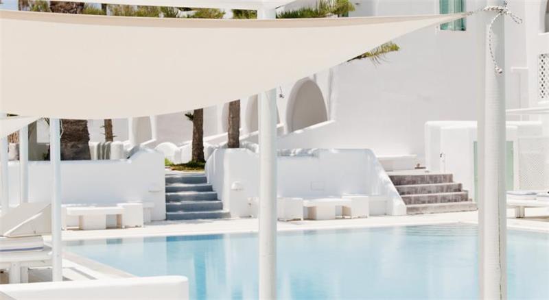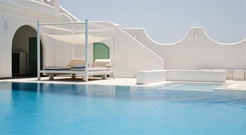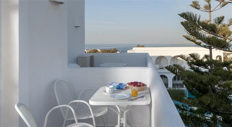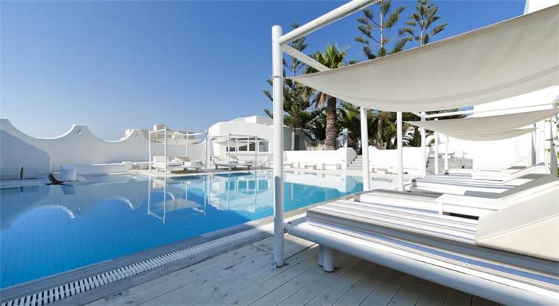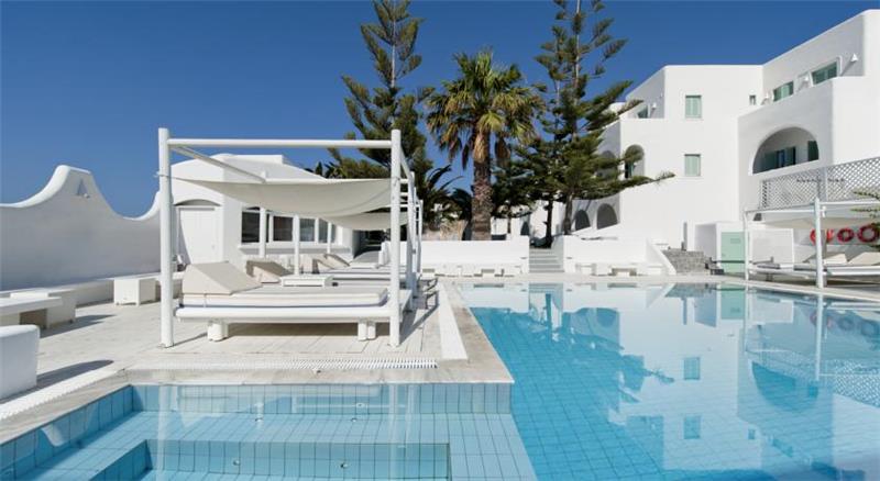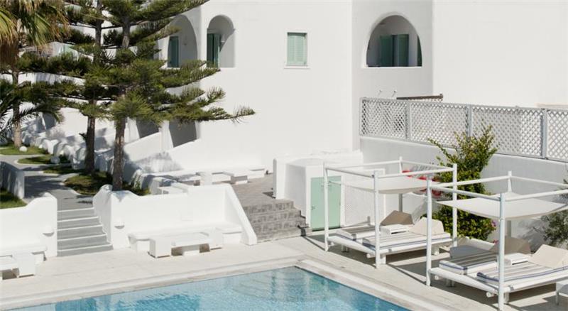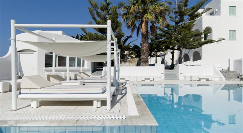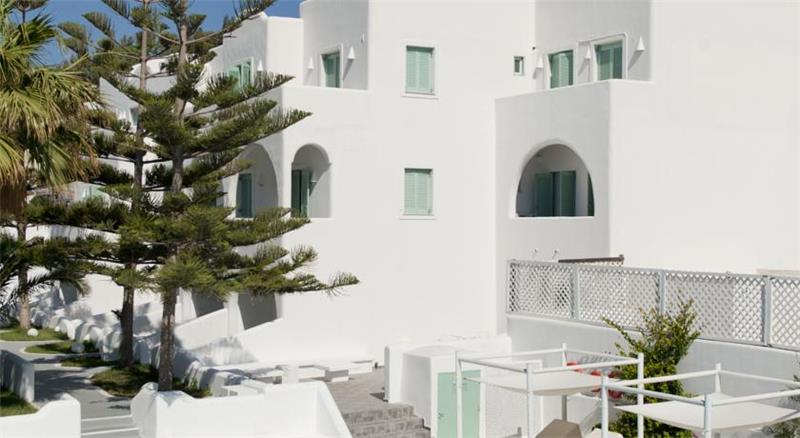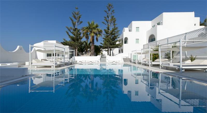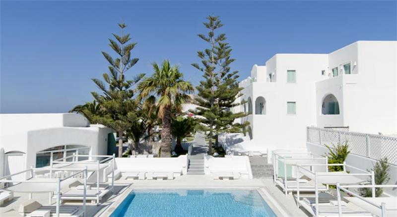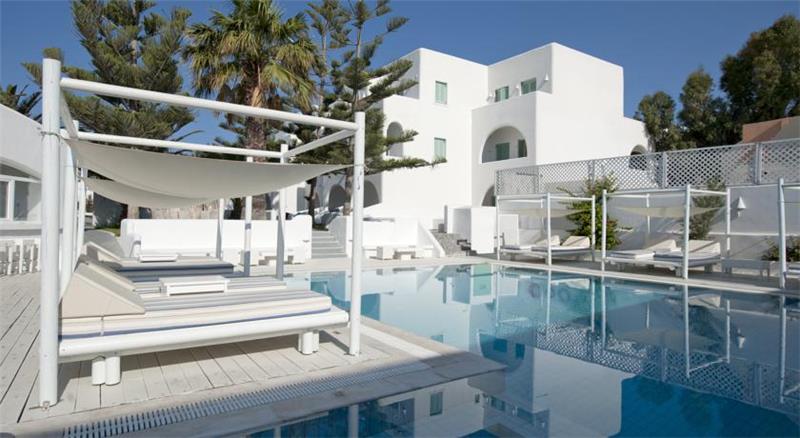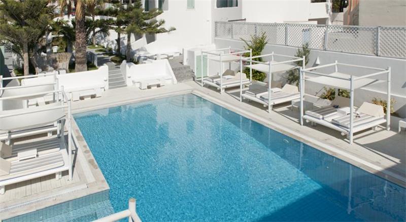 I rrethuar nga kopshte aromatic dhe palma Daedalus Hotel ne Fira Santorini eshte I pozicionuar ne menyre ideale mu ne zemer te kryeqytetit te Santorinit, Fira. I frymezuar nga arkitektura cikladike ky hotel ka harmoni ndermjet elementeve te arkitektures tradicionale dhe dekorimit modern. Hoteli posedon 45 dhoma dhe suita me dekorim modern. Te gjitha jane te pajisura me ajer te kondicionuar, TV satelitor, minibar, internet WiFi, banjo me vaske/dush, ballkon ose verande me pamje nga kopshti ose nga pishina. Hoteli sherben mengjes me bufe te hapur ne dhomen e mengjesit. Lounge bar prane pishines sherben pije te ndryshme dhe kokteje shumengjyreshe gjate gjithe dites. Hoteli gjithashtu ofron per pushuesit e vet sauna dhe hidromasazh dhe nje pishine te jashtme Jacuzzi.