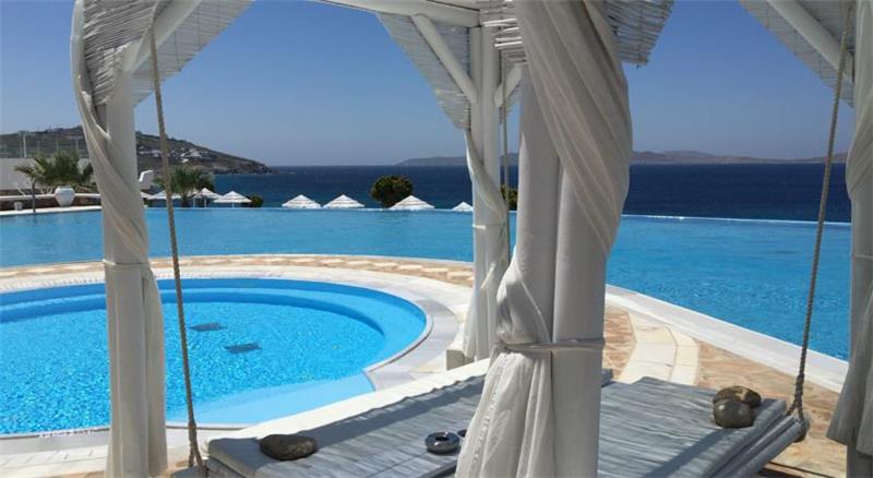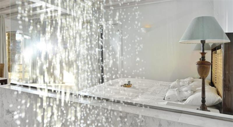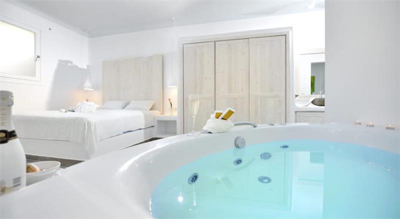 I shtrire mbi nje siperfaqe 20.000-metra katrore, Saint John Hotel Villas & Spa permban nje pishine infinity me pamje te hapur ne plazhin e tij privat. Dhoma me dush spa, restorantet dhe baret te famshme presin mysafiret. Dhomat elegante ofrojne pamje nga deti apo kopshti. Dhomat luksoze jane te pajisura telefon, ajer te kondicionuar dhe ngrohje, TV satelitor, radio, mini frigorifer, kasaforte dhe tharese flokesh. Nje piano bar, 3 restorante dhe 2 bare te tjera te ofrojne opsione te ndryshme ngrenie dhe pije nga te zakonshmet tek me romantiket. Spa & Beauty Centre Aphrodite ofron 5 dhoma trajtimesh. Paisjet e fundit te teknologjise perfshijne sauna, hamam dhe pishina te brendshme me ngrohje. Aeroporti eshte 4 km larg, dhe Porti i ri eshte 6 km larg. Qyteti aktiv i Choras eshte 4 km larg. Parking privat falas eshte ne dispozicion.