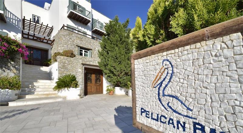 Pelican Bay eshte i vendosur ne zonen Platys Gialos, vetem 300 metra nga plazhi i famshem dhe stacioni i autobusit urban, 4 km larg nga aeroporti dhe qendra e qytetit te Mykonos dhe portit. Pelican Bay Hotel Art ofron, parametra elegant dhe artistik, sherbime te shkelqyera, dhoma luksoze me shije dhe dekorim te veçante. Hoteli disponon 39 dhoma te pajisura me ajer te kondicionuar, TV satelitor, Internet WiFI, telefon, minibar, kasaforte, banjo me vaske/dush dhe tharese flokesh. Mengjesi sherbehet cdo dite ne sallen e mengjesit me bufe te pasur nga produktet e fresketa lokale. Snack bar prane pishines sherben pije te ndryshme, kokteje dhe ushqime te lehta gjate gjithe dites deri ne oret e vona te mbremjes me pamjet fantastike qe ofron. Hoteli ofron nje lobi plotesisht me ajer te kondicionuar me TV satelitor, internet, ashensore, palester, sauna, parking privat, sherbim ne dhome, pishine dhe nje koktej bar te rrethuar me veranda me pamje te shkelqyer.
