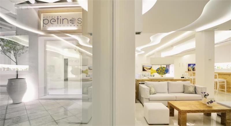 Petinos Beach hotel eshte nje kompleks mbreselenes me 5 yje ne Mykonos. Hoteli i sapo rinovuar eshte thjeshte nje nga parajsat me te bukura ne rajon. Me arkitekturen terheqese dhe ambjentet e brendshme luksoze, pershtatet lehte me stilin tradicional arkitekturor dhe karakterin e Mykonos. Te 24 dhomat dhe suitat jane te bollshme dhe kane dekor dhe mobilim klasik dhe modern. Keto dhoma jane te pajisura me telefon, ajer te kondicionuar dhe ngrohje, TV satelitor, radio, mini frigorifer, kasaforte dhe tharese flokesh. Pushuesit ne Petinos Beach hotel mund te hane dreke ne dy mjedise te mrekullueshme. ''THEA Restorant”, ofron ushqime te lehta dhe pije freskuese te sherbyera rreth pishines se hapur, ndersa e 'Restorant Blue Miti' i ofron miqve specialitetet joshese te pergatitura vetem nga perberesit me te fresket sezonal. Hoteli ofron edhe shume sherbime dhe lehtesira te tjera si Snack bar, Pishine Spa, Massage, Hamami, Sauna, Beauty Salon, Jacuzzi, Transferta Private etj.