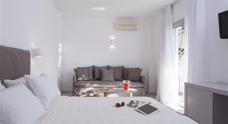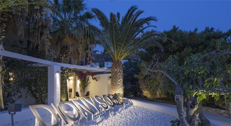 Dionyssos Boutique Hotel ndodhet 50m larg nga plazhi i Ornos, prane zemres se Mykonos. Hoteli ve 46 dhoma, suita dhe apartamente ne dispozicion te pushuesve te cilat jane te dekoruara me stil tradicional dhe dekor relaksues. Te gjitha dhomat jane te pajisura me ajer te kondicionuar, TV satelitor, telefon, minibar, internet WiFi, etj. Te gjitha kane dalje ne ballkon. Ne nje distance te shkurter nga hoteli ndodhen restorante, dyqane, bare dhe klube nate te ndryshme. Hoteli sherben mengjesin cdo dite ne sallen e mengjesit. Pool Bar prane pishines sherben pije te ndryshme dhe kokteje shumengjyreshe gjate gjithe dites deri ne oret e vona te mbremjes. Trajtime, masazhe dhe terapi te ndryshme ofrohen ne qendren Spa te hotelit per momente relaksuese. Per ata qe duan te mbajne trupin e tyre ne forme perfekte hoteli ka ne dispozicion palestren e kompletuar me te gjitha paisjet e duhura. Hoteli organizon eskursione te ndryshme per te zbuluar zonat me te bukura historike dhe arkeologjike te ishullit. Hoteli ka dy pishina ne natyre, kend lojrash per femije, Jacuzzi e shume sherbime te tjera per ta bere qendrimin tuaj te paharrueshem.