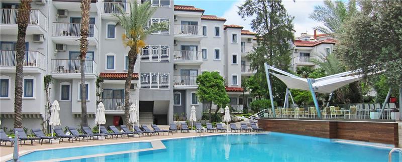 Hoteli Sentido Marina Suites eshte i vendosur në qendër të qytetit të Kusadasi në bregdetin Egje të Turqisë. Vetëm pak metra nga hoteli shtrihet marina piktoreske me dyqane të panumërta, restorante dhe bare, si dhe një plazh publik me rërë. Kusadasi është gjithashtu një pikënisje ideale për ekskursione, në historinë e Turqisë. Ne veçanti rekomandohet një udhëtim në qytet- portin e lashtë dhe gati plotësisht te ruajtur të Efesit, vetëm 20 km larg. Sentido Marina Suites ka 84 dhoma moderne dhe të mirë-mobiluara te shpërndara në pesë kate dhe një ofertë maksimale rehatie. Restoranti i Sentido Marina Suites shërben një mëngjes të pasur me bufe. Gjithashtu specialitetet lokale dhe ndërkombëtare vijne me bufe te hapur në vaktet kryesore. Ndërsane restorantin e ri à la përveç kuzhinës se shijshme mund te shijoni dhe një pamje të shkëlqyer të jahteve madhështor në port. "Pool Bar" dhe "Lobby Bar" sherben pije te ndryshme, kokteje shumengjyreshe dhe lengje frutash te fresketa gjate gjithe dites deri ne oret e vona te mbremjes. Nëse doni te shijoni diellin në pishinën e hotelit ose të përfitoni nga aktivitetet sportive të tilla si pingpong, bilardo, shigjetat, gjimnastikë uji apo aerobi, ju mund të keni llojin e pushimeve që dëshironi në Sentido Marina Suites.