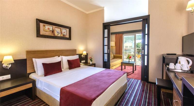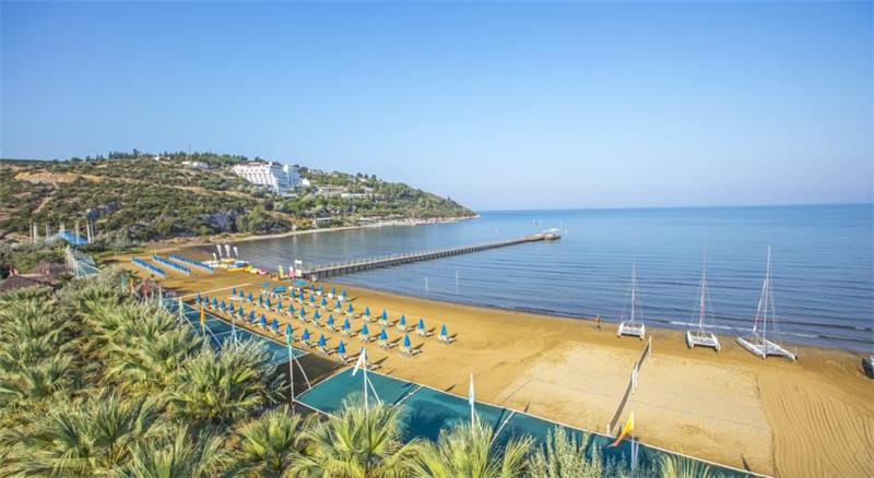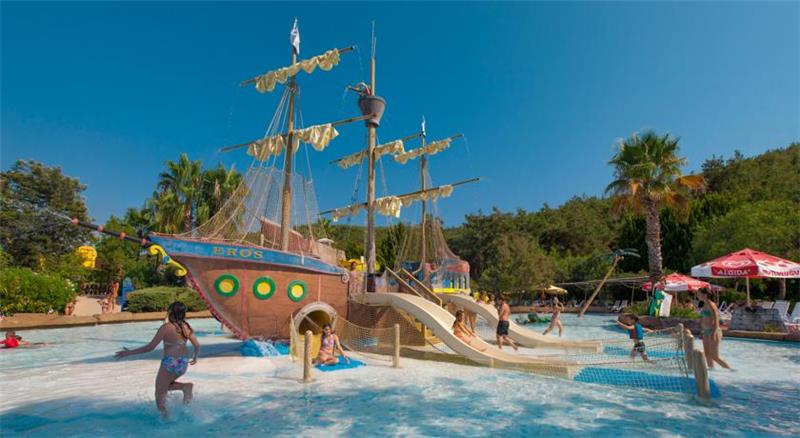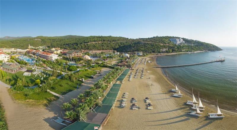 Aqua Fantasy Aquapark Hotel dhe Spa është e vendosur në një pjese të qetë të Pamucak Beach në periferi të Kusadasi. Hoteli ka pamje nga malet e veshur me pisha dhe mbi brigjet e Egjeut, dhe tërheqje vendet historike të Efesit dhe Selcuk janë vetem 10 km larg. Hoteli është i vendosur në nje siperfaqe te madhe dhe ofron një gamë të gjerë argetimi gjate ditës dhe në mbrëmje. Parku ujor me permasa gjigande është një nga arsyet kryesore qe pushuesit zgjedhin për të qëndruar këtu me rreshqiteset e shumta të tilla si Viper dhe Scamer por kryesori eshte XTreme, me nje shpejtësi prej 80km ne ore! Ketu ka vërtetë diçka që eshte e përshtatshme per të gjithë. Dhomat e rehatshme në madhësi të ndryshme janë në dispozicion për t’ju bëre të ndiheni si në shtëpi duke shijuar pushimet tuaja hotel. Dhomat janë të dekoruara me stil dhe komoditet. Ne hotel ju do te gjeni argetime te ndryshme te pershatura per te gjitha moshat si aktivite per femije, pishine per femije, miniclub, animacione te ndryshme, show, muzike live, qender spaje, sauna, banjo turke, banjo me avull, sallon bukurie, qender fitnesi dhe aktivitete te ndryshme sportive si gjimnastike ne uje, basketboll, vollejboll ne plazh, tenis, bilardo, aerobi dhe sportet e ujit. Baret dhe restorantet : Hoteli operon me sherbimin all inclusive, ne te ju do te gjeni nje shumellojshmeri gatimesh nga kuzhina turke , aziatike, nderkombetare pa lene pas gatimet e produkteve te detit. Dy restorantet kryesore te hotelit Tropicano dhe Oasis sherbejne vaktet kryesore dhe vakte te ndermjetme me bufe te hapur e me nje shumellojshmeri gatimesh me kuzhine nderkombetare dhe per te gjitha shijet dhe moshat. Pirate’s Stake House A’la carte sherben specialitete mishi per te gjithe adhuruesit e mishit. Mandarin Gourmet A’la carte sherben specilitetet me te mira nga kuzhina kineze. Marine Restaurant A’la carte sherben specialitete te shijshme me baze peshku dhe prodhime te fresketa te detit. Marios A’la carte restaurant sherben specialitete Italiane dhe Meze A’la carte restaurant sherben me te miren e kuzhines tradicionale Turke.