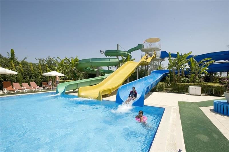 Nje hotel i mrekullueshem qe ndodhet vetem 20 min larg aeroportit dhe ofron nje cilesi te larte sherbimi dhe akomodimi per te gjithe te ftuarit e saj. Ne dispozicionin tuaj jane ne total 425 dhoma standarte (28-35m2), 122 dhoma connection, 14 suita (75m2) si dhe 11 dhoma per persona me aftesi te kufizuar. Dhomat jane te arreduara me kushte luksoze dhe elegante. Me një kombinim të animatoreve profesionale, mini-club, lojra aktiviteteve në natyrë dhe ne ambjente të mbyllura, krijojnë një botë të mrekullueshme pushimesh per të gjithë. Ketu do te gjeni mundesi te ndryshme argetimi dhe clodhje si terrene sportive dhe sportet e ujit per te gjithe te apasionuari e sporteve. Animacionet ne amfiteater ne pishine dhe ne det nuk do te mungojne ne asnje moment pergjate dites dhe nates. Qendra e spa-ve , saunave dhe fitnesit jane ne dispozicionin tuaj me trajtime te vecanta per trupin dhe lekuren tuaj. Nje vemendje te vecante do te kene dhe femijet qe kane ne dispozicion pishinen e tyre , kendlojrash per femije , mimiclub etj. Ne dispozicionin tuaj jane : pishine per te rritur , pishine per femije , pishine e brendeshme , rreshqitese etj. Hoteli eshte i pershtatshem per te rinje, ciftet dhe familjaret me femije te te gjitha moshave. Baret dhe Restorantet: Hoteli operon me sherbimin ultra all inclusve dhe sherben gatime dhe pije te ndryshme pergjate gjithe dites ne baret dhe restorantet e vena ne dispozicion me mundesi te ndryshme perzgjedhje sipas shijes dhe deshires tuaj. Ne boten e kuzhines hoteli na ofron restorantin kryesor Turkuaz – qe hapet nga ora 07.00-21.30 dhe sherben vaktet kryesore dhe te ndermjetme ne bufe te hapur me mundesi te ndryshme perzgjedhjesh ne ushqime. 4 restorante A La Carte do te sherbejne darken tuaj me gatime speciale nga guzhinat me te njohura botrore . Miracolo a la carte restorane- sherben specialitetet me te mira nga guzhina italiane. Mexican a la carte restoran- sherben gatimet me te mira nga guzhina meksikane. Lagos a la carte restorant- sherben gatime speciale me baze peshku dhe prodhime deti. Anatolia restorant- sherben gatime speciale nga guzhina tradicionale tradicionale turke. Bar ne pishine, bar ne plazh, Exclusive bar, Vitamin bar dhe Disco bar - sherben embelsira, caj, kafe dhe te gjitha llojet e pijeve vendase dhe importit, alkolike dhe joalkolike, te ngrohta dhe te ftohta, kokteile te ndryshme shumengjyreshe etj.