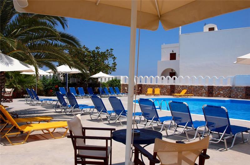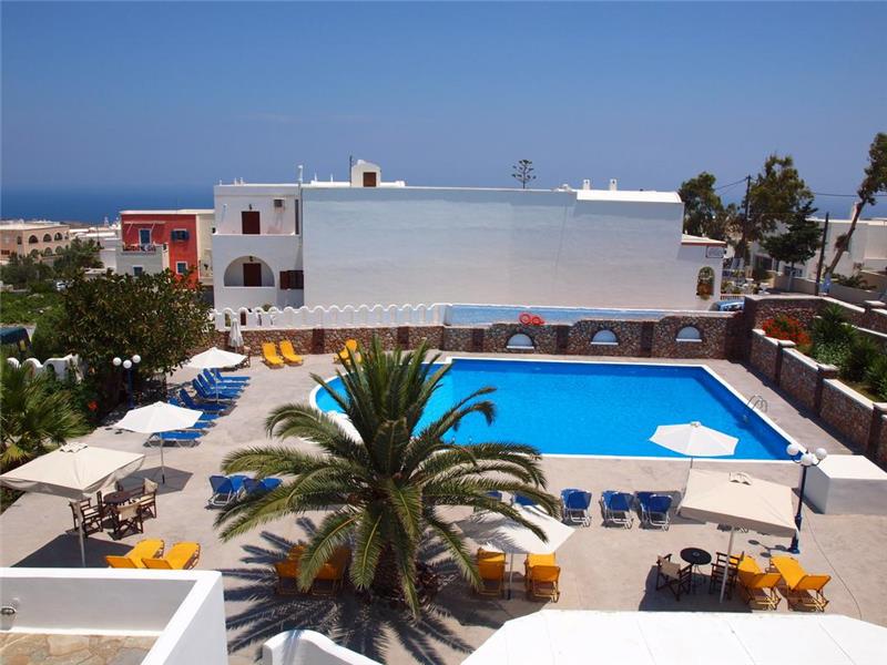 I ndodhur në një kopsht 10-minuta në këmbë nga qendra e Fira në Santorini, Albatros Hotel përmban një pishinë dhe një bar pishinë. Wi-Fi falas. Dhomat qe te gjitha kane ballkon, të ajer te kondicionuar, një frigorifer dhe një televizor. Secili ka një banjo private me tharëse flokësh. Mëngjesi sherbehet ne dhomen e ngrenies ndersa darka është shërbyer në restorant dhe përfshin enët greke. Mysafirët mund të pushojnë në shazllonet e diellit në tarracë me një koktej. Santorini është 3 km larg dhe Porti është në 12 km. Organizime te ndryshme si ekskursione siaps deshires në fshatin Oia 13 km larg. Jepen makina me qira dhe parkimi eshte falas.