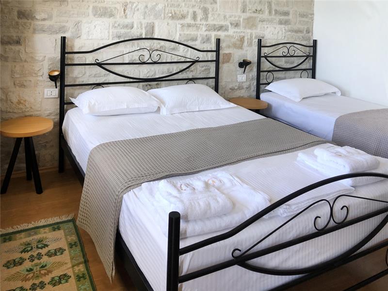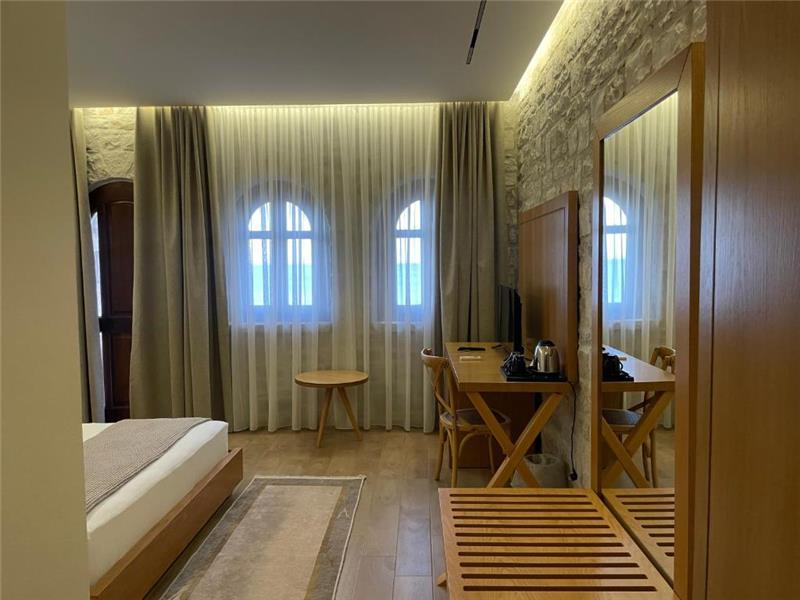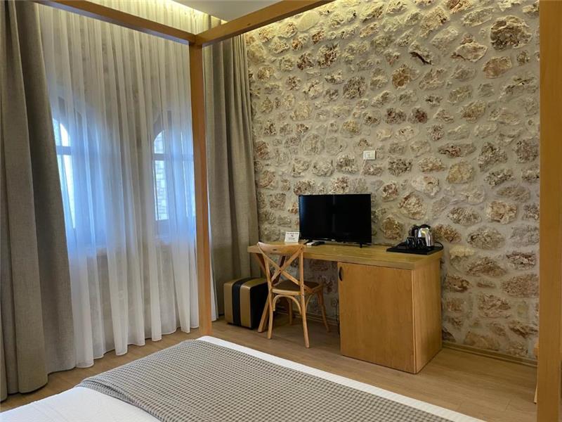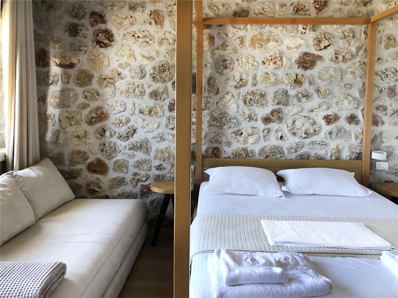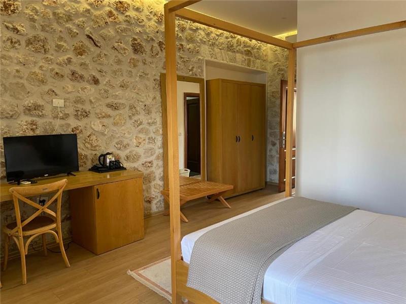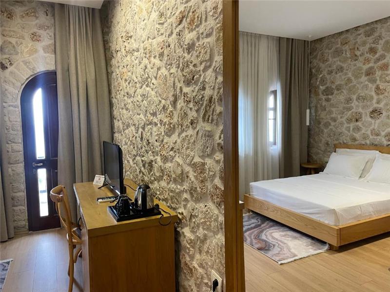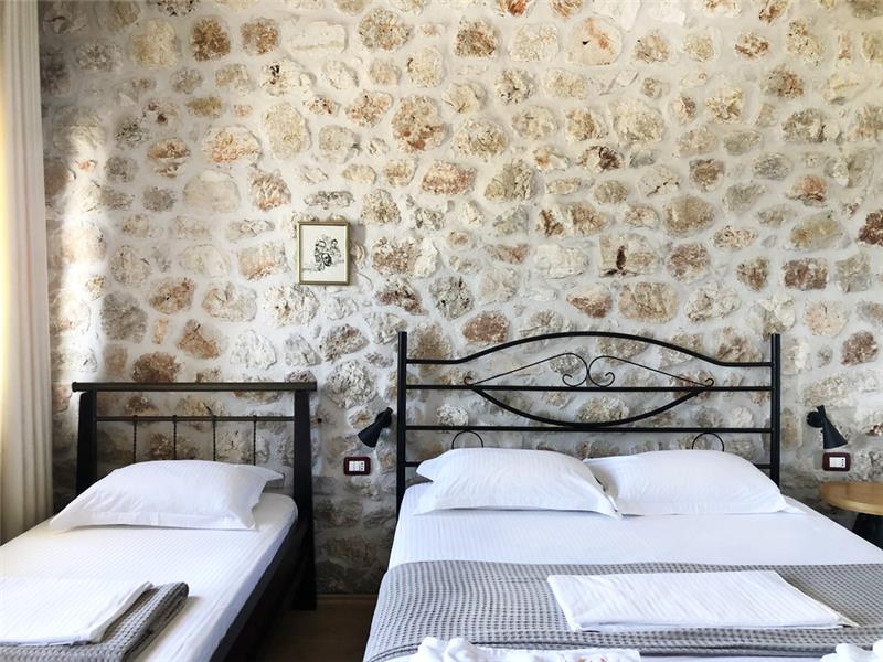 Hoteli ka 45 dhoma (shumica prej tyre dhoma dyshe/dyshe ose treshe). Çdo dhomë ka një ballkon me pamje nga deti me karrige dhe raft rrobash, një kondicioner, një TV me ekran të sheshtë, një gardërobë dhe një tavolinë shkrimi, një banjo private me dush, tualetin falas, peshqir, pantofla dhe tharëse flokësh.