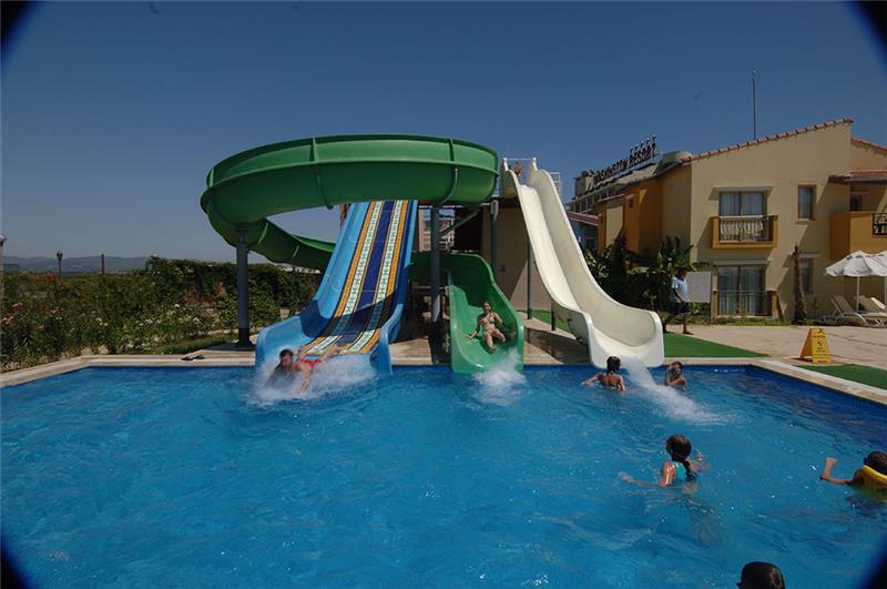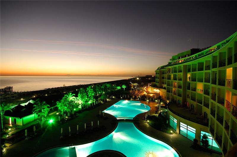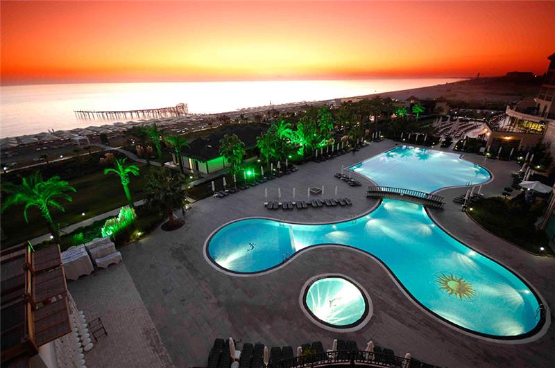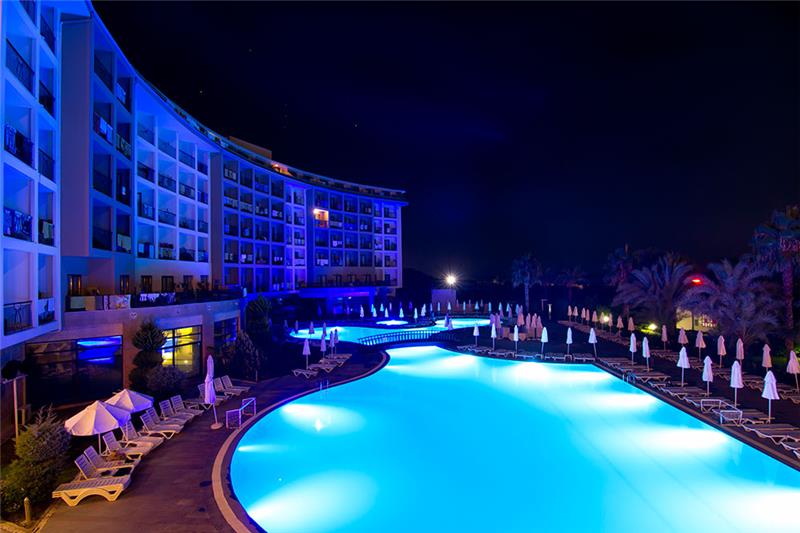 Nje hotel madheshtor qe ndodhet 1 ore larg aeroportit te Antalias dhe 20 min larg qytetit turistik te Mangavatit. Ndodhet vetem disa metra larg nga plazhi i tij privat me rere te arte qe laget nga ujrat e kristalta te detit Mesdhe. Hoteli eshte ndertuar në vitin 2005 dhe ka nje siperfaqe prej 30.000 m2. Perbehet nga nje ndertese kryesore dhe 17 vila dykatëshe. Ka 400 dhoma ne total, prej te cilave 192 jane dhoma standarte, 4 suite, 82 dhoma familjare, 3 dhoma per persona me aftesi te kufizuar , 5 dhoma ekonomike, 42 dhoma dhoma familjare ne vile dhe 72 dhoma standarte ne vile. Dhomat jane te pajisura me kushte luksoze dhe te arreeduara ne menyre elegante dhe moderne . Hoteli ve ne dispozicion te gjithe pushuesve Skuader Animacioni, 2 Pishina te brendshme dhe jashtme , 6 rreshqitese, 2 Pishina per femije,Aktivitete sportive, Fitness center, Voleyboll ne plazh, Ping-pong, Mini futboll, Bilardo, Basketboll, Tenis, Archery, Boccia me sfera, Darts me shigjeta, Aerobi dhe Gjimnastike, Step, Streching, Lojra ne plazh, Waterball, Mini golf, Trambolin, Sporte ujore me motorr, Surfing, Canoe, Jet ski, Banana, Parasailling, Sauna, Banjo Turke, Masazh, Parukeri, Doktor, 3 Salla per Takime dhe Konferenca, Programe dhe Aktivitete gjate dites, Show dhe Spektakel ne mbremje. Pushimet tuaj ne kete resort do te jene te mrekullueshme me deshiren e mire per tu rikthyer perseri veren tjeter. Baret dhe Restorantet: Hoteli operon me sherbimin all inclusive dhe sherben ushqim dhe pije pergjate gjithe dites ne baret dhe restorantet e vena ne dispozicion. Restoranti kryesor- sherbehen mengjesin, dreka dhe darka ne bufe te hapur sipas guzhines tradicionale turke. Istanbul Restorant i tipit A la Carte- hapet nga ora 19.00-21.30 , kutu keni mundesi te shijoni ushqime te kuzhine TurkeFish Restorant a la carte – sherben darken me prodhime te fresketa Deti dhe Peshku.Beach Snack restorant - mund te shijoni dreken prane plazhit me ushqime te shpejta . Club Snack- ne nje ambjent relaxues, mund te shijoni ushqime te lehta. Gozleme House – ketu sherbehet dreka tradicionale Turke. Lobby Bar, Beach Bar, Amphi Bar, Disco Bar, Club Pool Bar-sherbejne te gjithe llojet e pijeve duke filluar nga ato te imporit dhe vendaset, te ngrohta dhe te ftohta , alkolike dhe joalkolike , kokteile te ndryshme me shije te ndryshme , akullore ,embelsira etj.