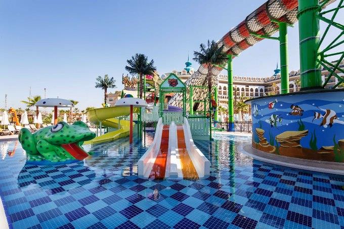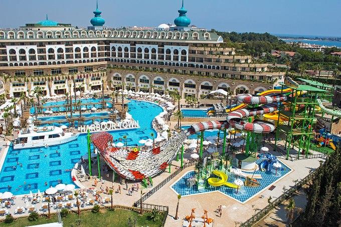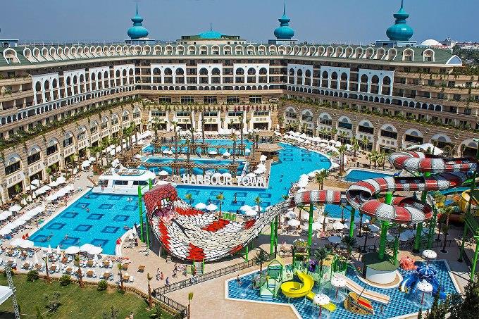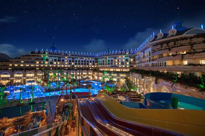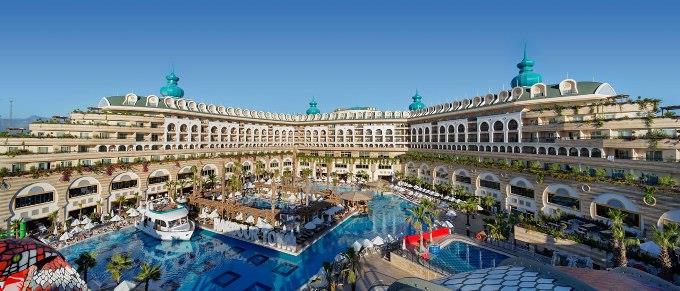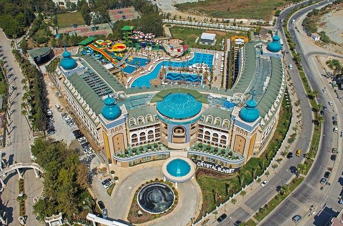Resorti Crystal Luxury Sunset Resort & Spa eshte i vendosur ne Side disa metra larg reres se arte qe laget nga ujrat e kristalta te detit mesdhe. Eshte nje hotel madheshor dhe mjaft luksoz qe ofron pushime te mrekullueshme ne rivieren e bukur turke. Ndodhet vetem 10 min larg qytetit turistik te mangavat dhe nje ore larg airoporitit nderkombatar te Sides. Ne dispozicion te pushuesve jane 500 dhoma me kushte luksoze dhe te arreduara ne menyre moderne duke ju dhene nje kenaqesi dhe clodhje gjate qendrimit tuaj ne kete hotel. Hoteli eshte i preferuar nga te rinjte , familjeret dhe femijet duke ofruar mundesi te pafundme argetimie dhe clodhje sic jane : pishinat e jashtme me siperfaqe 1895 m2, 3 pishina te jashtme me rreshqitese , pishine e brendshme me uje te ngrohte , 2 pishina per femije, shezlongje pergjate pishinave dhe ne breg te detit per tju ofruar clodhje dhe relaks me panorames e bukur te kesaj zone dhe bukurine e ketij hoteli masheshtor . Aquaparku ketu eshte gjigand me 8 rreshqitese dhe 80 meter i gjate. Terrenet sportive me fusha te posacme per te praktikuar sportet tuaja te preferuara , sportet e ujit si lundrime , zhytje , hedhje me parashure , aniomacione te ndryshme ne pishine dhe ne det , muzike live dhe show-t ne amfiteater nuk do te mungojne pergjate gjithe qendrimit tuaj ne kete resort te mrekullueshme . Pushimet tuaja ketu do te jene fantastike me deshiren per tu rikthyer perseri veren tjeter. Baret dhe restorantet : Hoteli operon me sherbimin ultra all inclusive dhe sherbejne ushqim dhe pije pergjate gjithe dites ne baret dhe restorantet e vena ne dispozicion me nje larmi perzgjedhjesh nga guzhina turke dhe ajo nderkombetare. Restoranti kryesor sunset- sherben vaktet kryesore dhe te ndermjetme ne bufe te hapur me mundesi te ndryshme zgjedhje nga guzhina turke dhe ajo mesdhetare. Harbour town Lunch Restaurant-sherben gatime te shpejta tradicionale turke si byreku pietet etj. Mediterranean breze Restaurant- sherben darken me gatime tradicionale turke ne ambjent te hapur. H Crystal Sunset Cruise Restaurant a la carte – sherben darken tuaj me gatimet me te mira nga guzhina mesdhetare, Oriental Express Asian a la carte- sherben darken tuaj ne ambjet te hapur me gatimet me te mira nga guzhina aziatike. Restaurant,Toffie Apple a la carte Restaurant- sherben darken sipas guzhines mesdhetare. Mediterranean Breeze Restaurant- sherben gatime special te guzhines mesdhetare dhe asaj turke. Pasha Ottoman a la carte Restaurant- sherben darken tuaj sipas guzhines aziatike me specialitetet e saj. Crystal Planet World Cuisine a la carte Restaurant- sherben darken tuaj me specialitetet nga guzhina turke. Stairway To Heaven Fine Dining a la carte Restaurant- sherben darken tuaj dhe eshte mjaft romantik si restorant . Night Owl Bistro- qendron I hapur gjate oreve te vona dhe sherben ushqime te shpejta. Sweettooth Patisserie- sherben embelsira, kafe dhe caj pergjate gjithe dites. Lobby Bar,Night Owl Bar,Irish Bar,Sunset View Beach Bar,Sweettooth Bar,Pool Bar,Waterworld Bar,Amphi Bar,Disco Bar- sherbejne te gjitha llojet e pijeve duke filluar nga ato vendase dhe te importit , te ngrohta dhe te ftohta , alkolike dhe joalkolike , embelsira dhe akullore si dhe kokteile shumengjyreshe me shije te ndryshme.