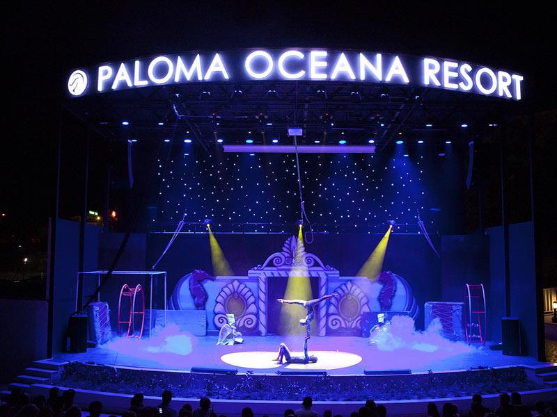 Resorti Paloma Oceana eshte i vendosur direkt ne brigjet e Mesdheut ne zonen turistike te Sides ne rivieren e bukur turke dhe eshte i integruar me bukurite natyrore te plazheve ranore dhe maleve qe e rrethojne. Eshte ideal per familjet me femije te te gjitha moshave. Hoteli eshte ndertuar ne vitin 1992 dhe rinovuar ne vitin 2012, ofron komoditet dhe qetesi. Ka nje total prej 482 dhomash luksoze te arreduara ne menyre elegante dhe moderne. Ketu do te gjeni mundesi te pafundme clodhje dhe argetimi sic jane terrenet sportive ne breg te detit dhe ne fusha te posacme profesionale , sportet e ujit per te gjithe te apasionuarit mbas adrenalines dhe aventures, animacione dhe show pergjate gjithe qendrimit tuaj ne kete hotel, qendra e fitnesit spa dhe saunave ju ofrojne programe te posacme per trupin dhe lekuren tuaj duke ju dhene nje clodhje dhe kenaqesi deri ne detaje. Hoteli disponon pishine te brendeshme dhe te jashtme , pishine per femije , miniclub, kendlojrash etj . Baret dhe restorantet – Hoteli operon me sherbimin ultra all inclusive qe sherben ushqim dhe pije pergjate gjithe dites ne baret dhe restorantet e vena ne dispozicion me nje larmi perzgjedhjesh ne gatime nga guzhina turke dhe ajo nderkombetare. Restoranti kryesor – hapet nga ora 07.00-21.30 dhe sherben vaktet kryesore ne bufe te hapur . Hoteli gjithashtu ofron dhe dhe restorantet a la carta me pagese qe sherbejne darken tuaj nga ora 19.00-21.30. Kebab a la carte restorant – sherben darken per te gjithe te apasionuarti mbas gatimeve te zgares. Barbeque a la carte - sherben darken per te gjithe te apasionuarti mbas gatimeve te zgares.Lotus dhe safran Restaurant- sherben darken tuaj me specialitetet me te mira nga guzhina nderkombatare. Ada pasticeri- sherben embelsira , kafe dhe caj pergjate gjithe dites. Piano Bar,Aqua Snack Bar,Turquoise Bar,Sunset Beach Bar,Ocean Bar,Turkish Coffee- sherbejne te gjithe llojet e pijeve duke filluar nga ato te imporit dhe vendaset, te ngrohta dhe te ftohta , alkolike dhe joalkolike , kokteile te ndryshme me shije te ndryshme , akullore ,embelsira etj.