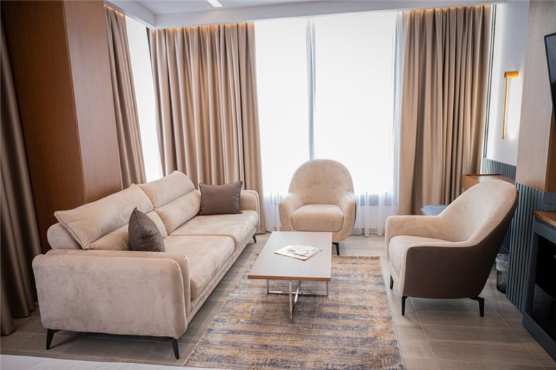 Një staf profesional dhe punëtor që punon pa u lodhur për t'ju dhënë shërbimin maksimal, duke siguruar që përvoja juaj të jetë 100% pozitive dhe gjithashtu i motivuar nga parimi karakteristik i një "Mikpritjeje" Shqiptare. Hoteli përbëhet nga 174 dhoma, duke përfshirë 28 suita dhe 146 dhoma standarde.