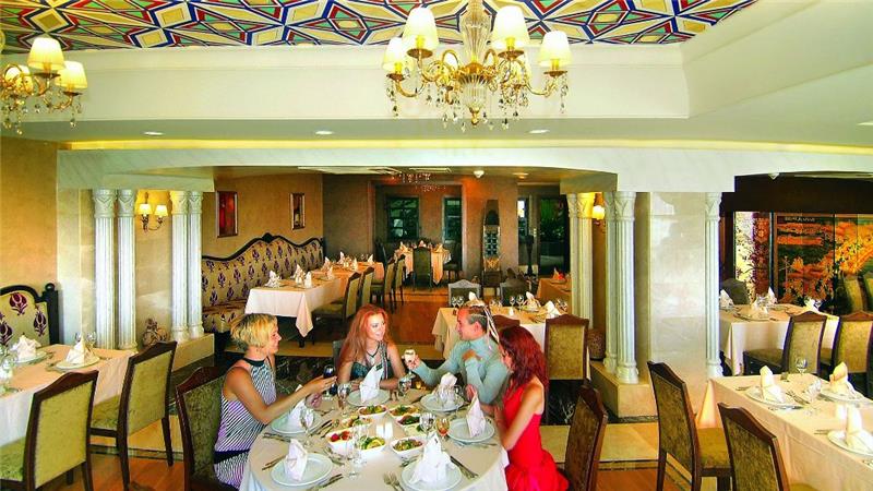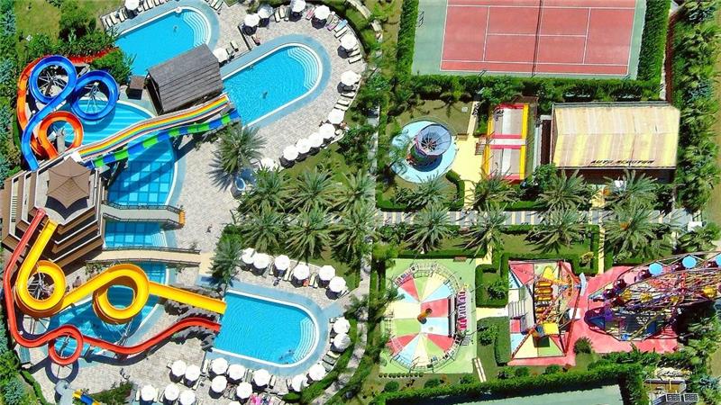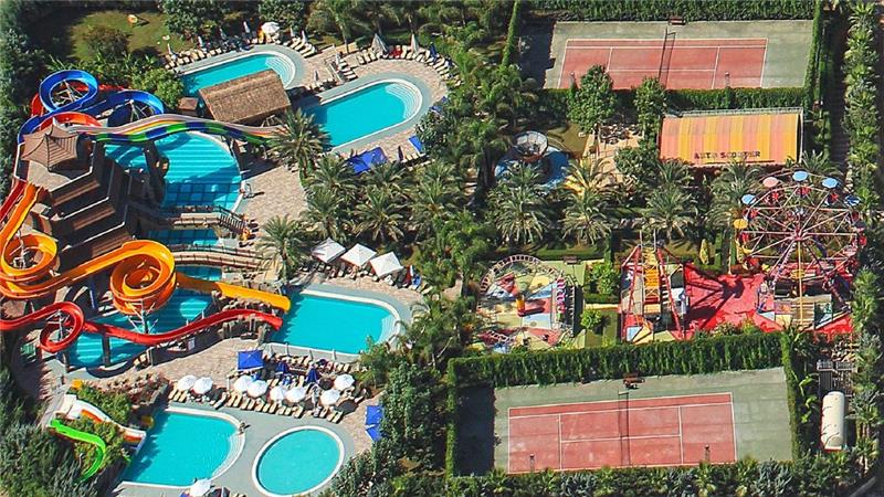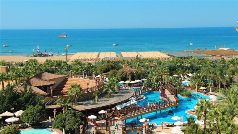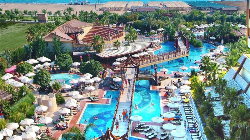 Royal Dragon hote ka nje arkitekture te vacante dhe madheshtore ne llojin e saj me nje siperfaqe prej 50000 m2 dhe eshte hapur ne Prill te vitin 2008 dhe ka mare nje sere cmimesh si : Holiday Check 2008,2010, Thomas Cook Awards 2009,Blue Flag 2010 etj. Me arkitekturen e vecante dhe me rrugica te shumta qe nga hoteli ne plazh dhe ne pishina ketu do te perjetoni nje kenaqesi dhe clodhje me panoramen e mrekullueshme nga bregu i mrekullueshem i mesdheut. Ne dispozicionin tuaj jane 564 dhoma, 408 dhoma standarte, 14 junior suite, 3 king suite, 104 duplex family dhe 35 family. Dhomat jane te pajisura me kushte moderne dhe te arreduara ne menyre luksoze dhe modern. Per pushime te paharruara hoteli ofron mbremje mahnitese show, amfiteater me kapacitet 1000 persona, kercime profesionale, muzik live, nate turke, disko, aktivitete sportive, gjimanstike, kurse kercimi, aerobi, stretching, table tenis, boccia, volejboll ne plazh, dart, lojra ne pishine, air gun, mini klub, mini futboll, mini basketboll, bowling, bilardo, slide racing, mini disko, internet kafe, fushe tenisi, banjo turke, sauna, masazhe, capsule care, trajtim fytyre dhe trupi, sherbime mjekesore doktor dhe infermiere, parukeri, shopping center per te kaluar kohen tuaj duke ju dhene kenaqesine e blerjeve. Baret dhe Restorantet: Hoteli operon me sherbimin ultra all inclusive dhe sherben ushqim dhe pije pergjate gjithe dites ne baret dhe restorantet e vena ne dispozicion me nje larmi perzgjedhjesh nga guzhina turke dhe ajo nderkombetare. Restoranti kryesor - ne te cilin sherbehet te treja vaktet ne bufe te hapur me specialitetet me mira nga guzhina turke dhe ajo nderkombatare. Snack restorant- sherbejne prodhime snack gjate gjithe dites si pizza dhe sanduic etj. Notte Bistro restorant –sherben per mengjesin e vone dhe vaktet e vona te nates.Hoteli ka 4 restorante te titpit A La Carte qe sherbejne darken tuaj nga ora 19.00-21.30 ne ambjente luksoz. Dulciena a la carte restorant – sherben prodhime te kuzhines italiane. Zen a la carte restorant- sherben darken me specialitetet me te mira nga guzhina aziatike, Firuze ala carte restorant- sherben darken me prodhimet me te mira nga kuzhina turke. Dorado a la carte restorant- sherben darken me specialitet peshku dhe prodhime deti. Lobby bar, bar ne pishine dhe ne plazh, Aqua bar, Vento snack bar, Amphi bar dhe disko bar- sherbejne te gjitha llojet e pijeve duke filluar nga ato vendase dhe te importit , te ngrohta dhe te ftohta , alkolike dhe joalkolike , embelsira dhe akullore si dhe kokteile shumengjyreshe me shije te ndryshme.