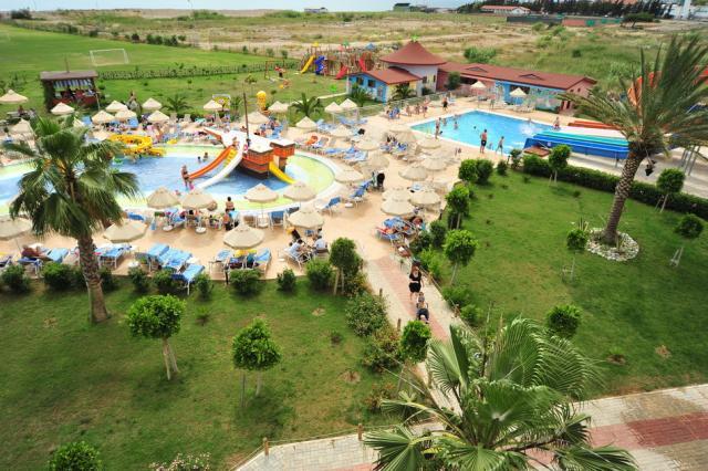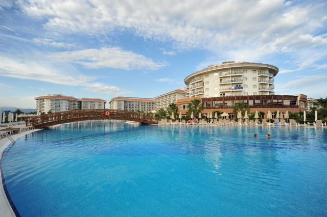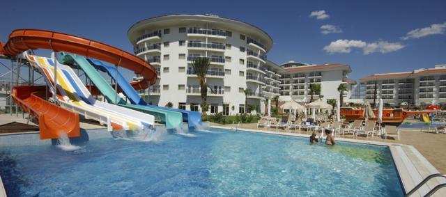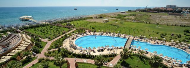 Sea world eshte nje resort i mrekullueshem qe ndodhet ne zonen turistike te Sides vetem 10 min larg Manavgatit dhe 1 ore larg aeroportit nderkombatar te Antalias. Hoteli ka nje arkitekture te vecante vetem disa metra larg plazhit te tij privat me reree. Hoteli perbehet nga nje ndertese me 5 kate dhe ka nje siperfaqen prej 50 000m2 dhe disponon ne total 528 dhoma dhe 1056 shtreter, te ndara ne 426 dhoma standarte, 90 dhoma familjare, 6 suita dhe 6 dhoma per persona me aftesi te kufizuara. Dhomat jane te arreduara ne menyre luksoze dhe elegante. Ketu do te gjeni mundesi te ndryshme argetimi dhe clodhje te vena ne dispizicion nga hoteli si : pishine te jashtme dhe te brendshme per te rritur dhe femije, aquapark, fushe lojerash per femije, miniclub, animacione, qender fitness, aktivitete te ndryshme ditore, sporte ujore, ping-pong, tennis, archery, boccia, darts, aerobi, volleyball, water polo, minifootball, salle lojerash, bilardo, internet, qender spa, masazhe, sauna, dhome me avull me programe te vecante per trupin dhe lekuren tuaj, terrene sportive dhe sportet e ujit. Hoteli sugjerohet per te rinjte , familjeret dhe femijet e te gjitha moshave. Baret dhe Restorantet: Hoteli operon me sherbimin all inclusive dhe sherben ushqim dhe pije pergjate gjithe dites ne baret dhe restorantet e vena ne dispozicion me nje larmi perzgjedhjesh nga guzhina turke dhe ajo nderkombetare. Restoranti kryesor- ka nje kapacitet 1500 personash dhe sherbehen vaktet ne bufe te hapur me mundesi zgjedhje sipas deshires dhe shijes tuaj. Ottoman a la carte restorant – sherben gatimet me te mira nga guzhina turke. Far East a la carte restorant – Sherben darken me specialitetet me te mira nga guzhina aziatike. Italian a la carte restorant - sherben darken tuaj me specialitetet me te mira nga guzhina italiane . Sea food restorant – sherben darken tuaj me gatime me baze peshku dhe prodhime deti. Ice cream bar – sherben akullore pergjate vaktit te drekes . Lobby bar , pool bar dhe beach bar – sherbejne te gjitha llojet e pijeve duke filluar nga ato vendase dhe te importit , te ngrohta dhe te ftohta , alkolike dhe joalkolike , embelsira dhe akullore si dhe kokteile shumengjyreshe me shije te ndryshme.